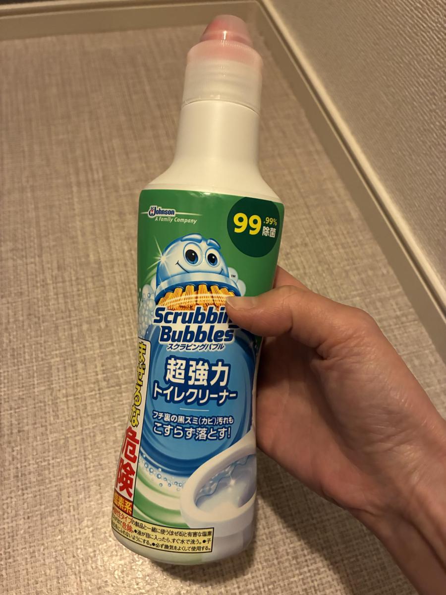 前まではスプレータイプの洗剤を使って掃除していましたが、スクラビングバブルは液だれなどする心配もなくフチ裏の汚れや黒ずみに塗布できるのでとても便利です。