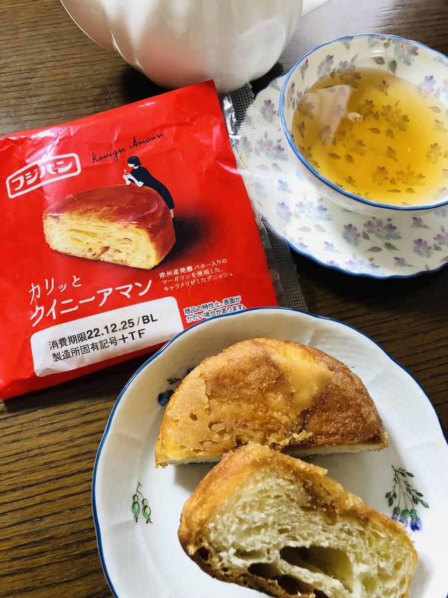 カリっとではなくガリガリするくらいの飴掛け。キャラメリゼなんて表現は不向き。だってこの飴掛け、分厚くてガチガチでもろ飴なんですもの。しかもすっごくおいしい!!べっこう飴や純露が好きな方は絶対に食べてほしいクイニーアマンです。デニッシュもクリームが入っているのかな??と思うくらいおいしい。(注)クリームは入っていません。しっとりとしたデニッシュですが、小麦とバターの香ばしさは失っていません。後味はほのかにバニラのような余韻もあり、とてもおいしいデニッシュです。