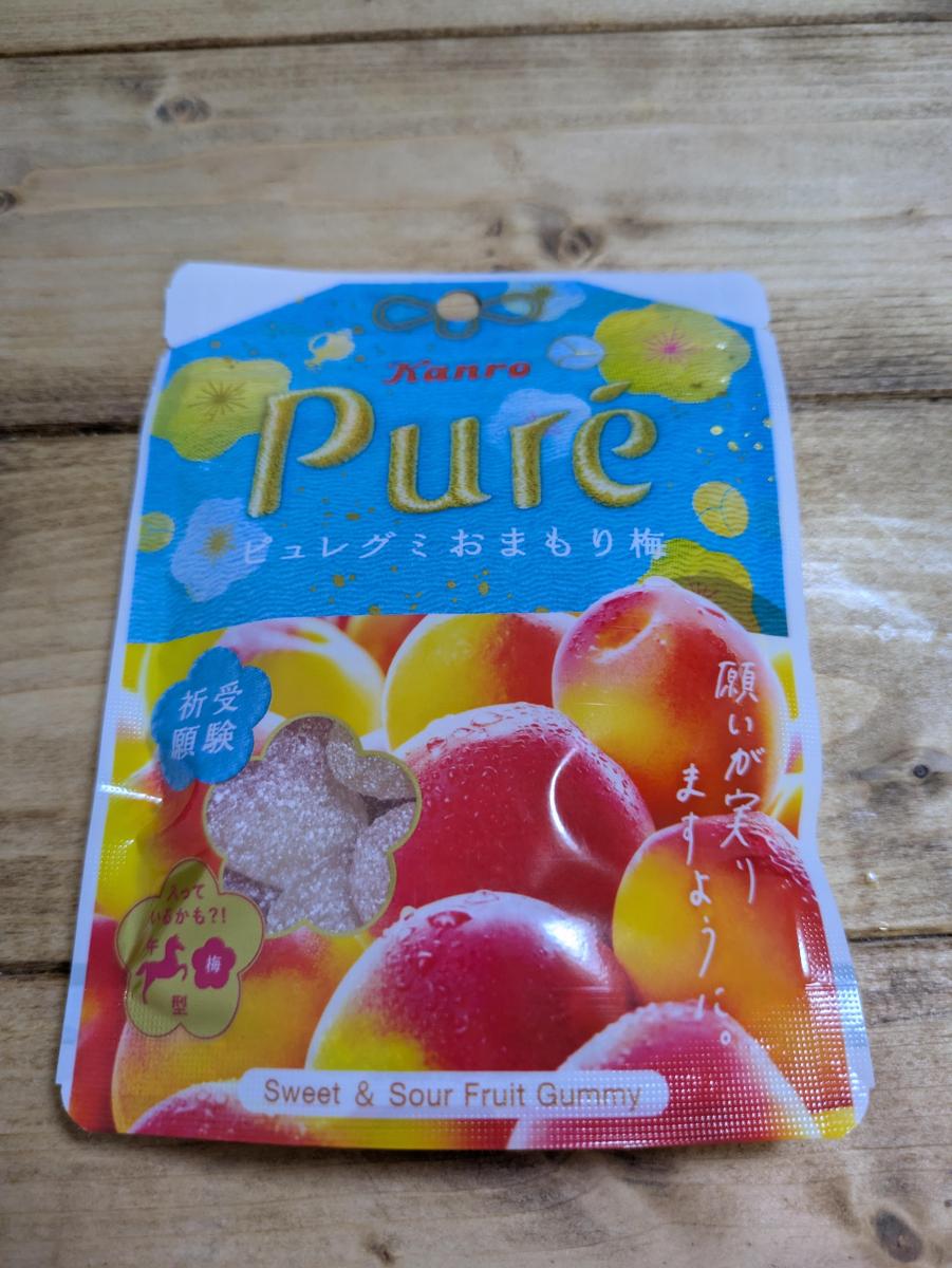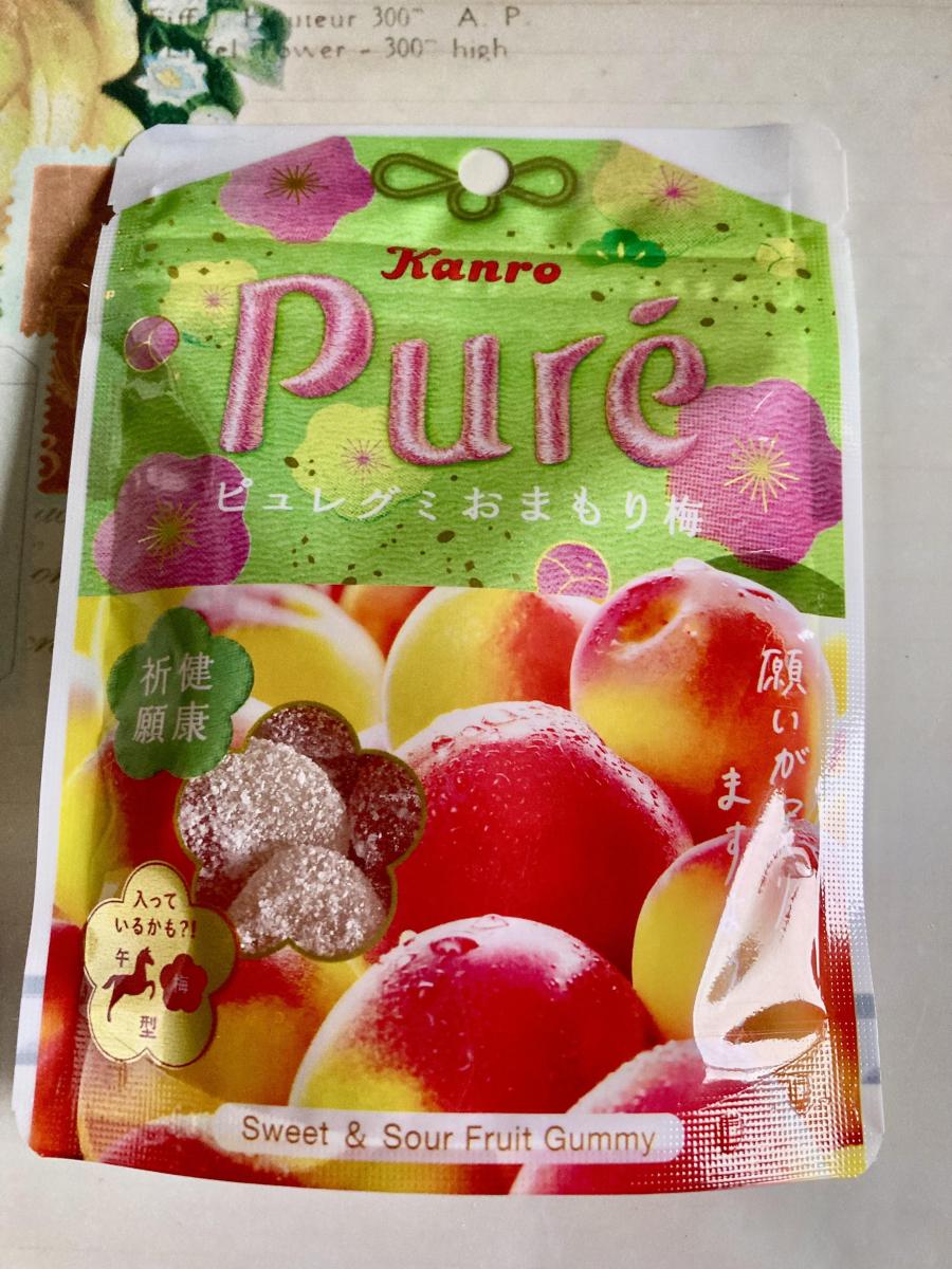 久々にピュレグミをみつけて、こちらのお守りぽいパッケージが可愛すぎて思わず購入してしまいました。食べてみるとほどよいハードな食感、そして甘酸っぱい梅味が広がりとても美味しかったです。梅味のお菓子が食べたくなったらまたリピートしたいです。