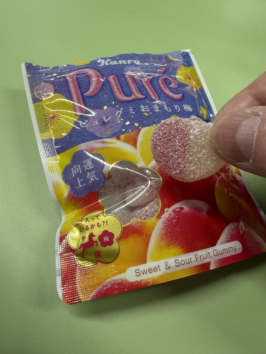 受験シーズン、学問の神様菅原道真公の飛梅伝説にあやかってか梅フレーバーのピュレグミ。