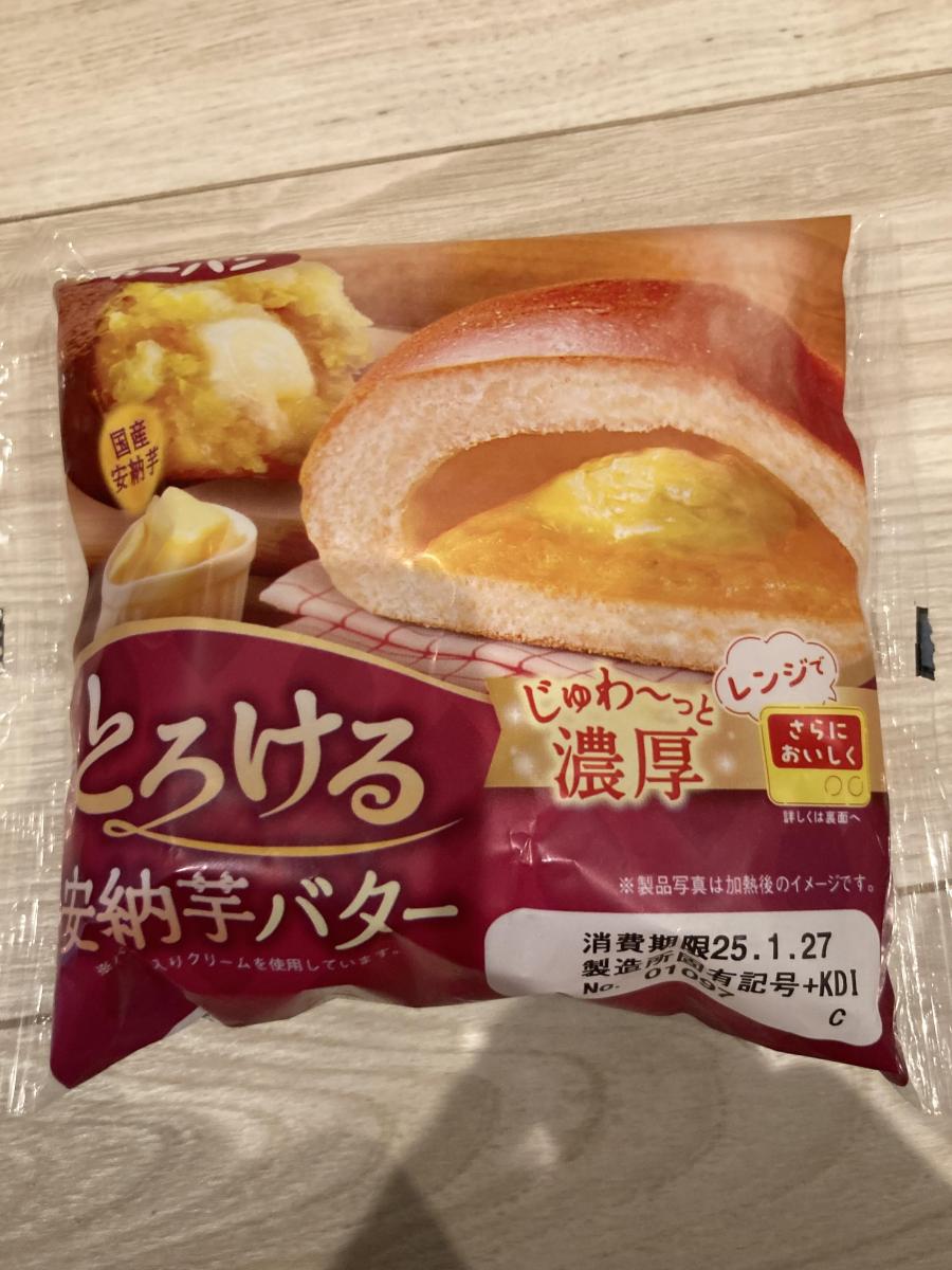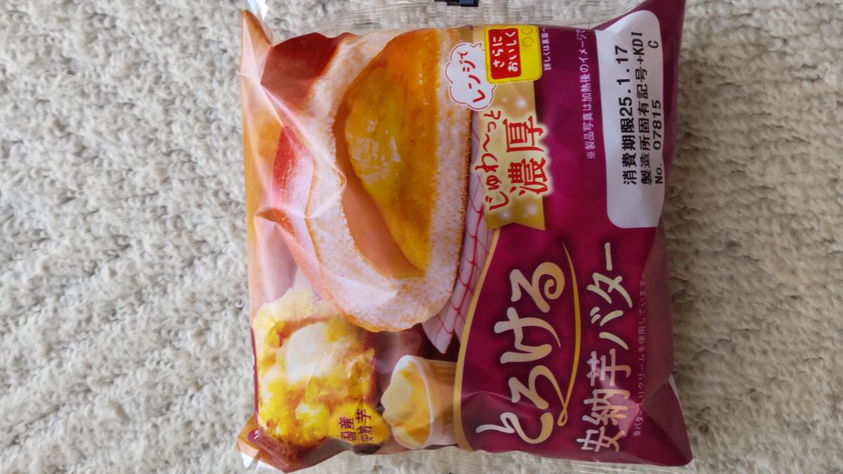 最初、そのまま口にして、マーガリン(バターではない)の量とそのぬるっとした口当たりに驚き、レンジで温めました。程よく溶けたマーガリンとお芋のあんが、甘じょっぱい感じです。