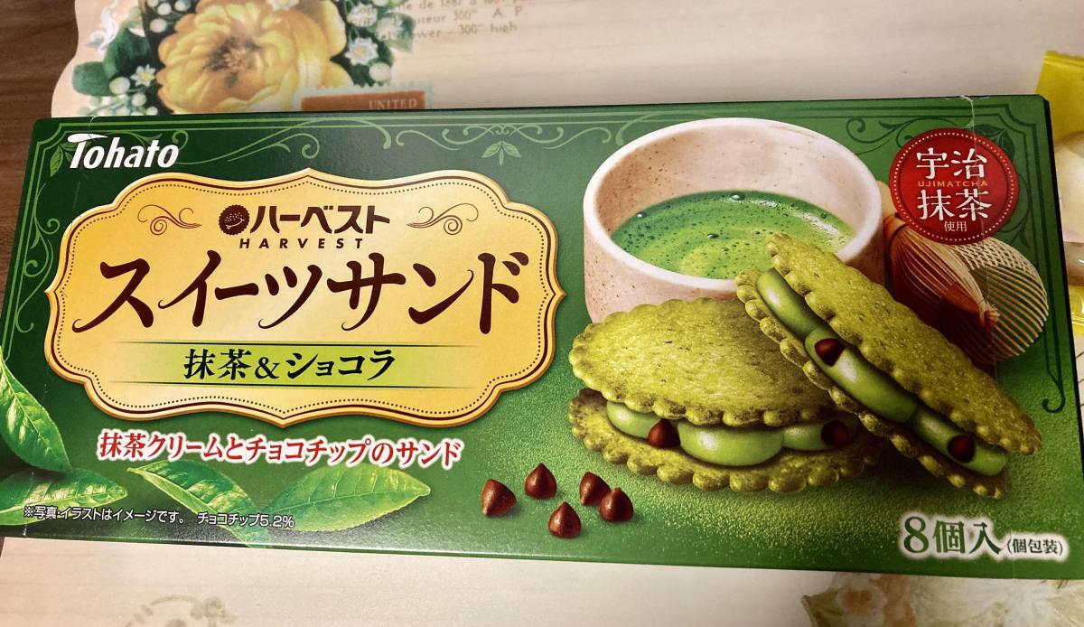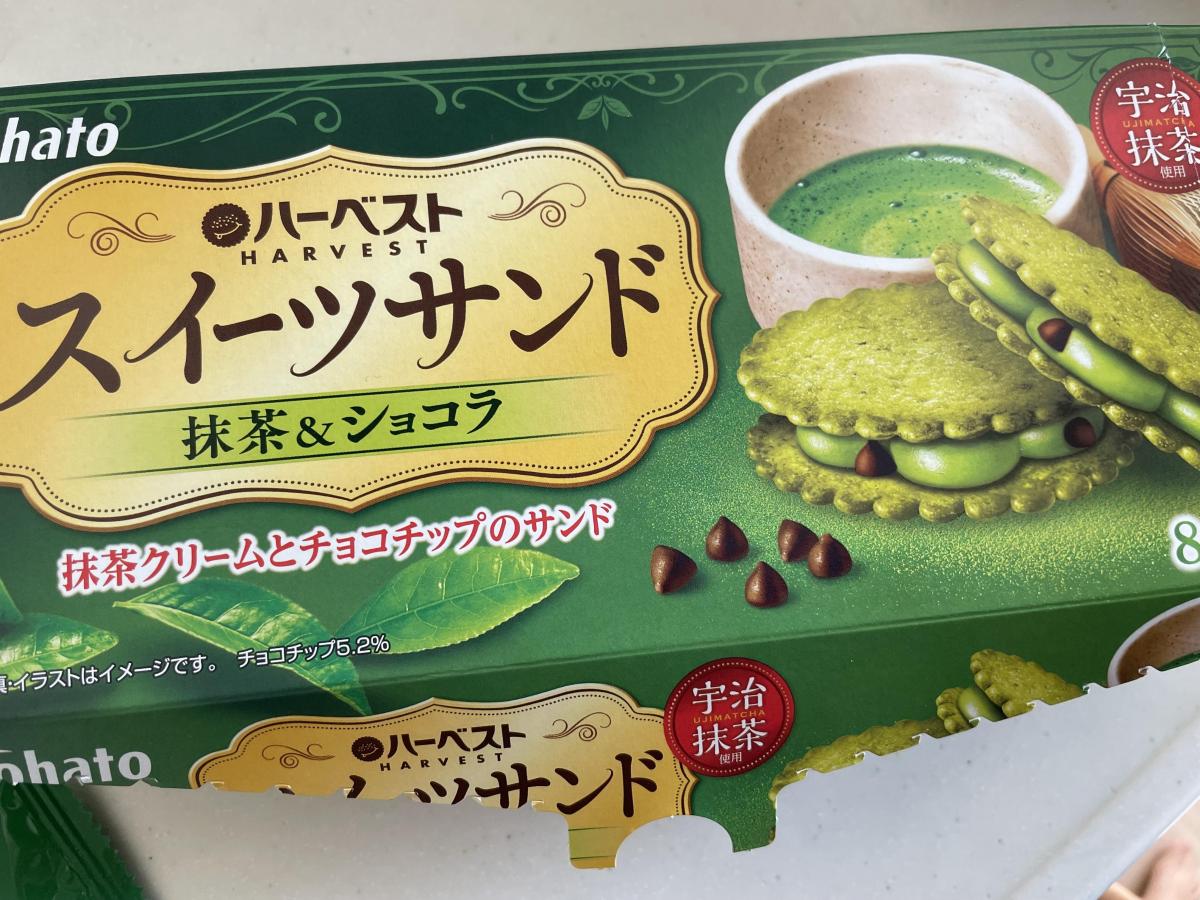抹茶味のお菓子が大好きなので食べてみたいと思い購入してみました。いつものハーベストのに抹茶クリームがサンドしている感じです。8枚しか入っていませんでしたが、抹茶クリームが甘さ控えめな食べやすいクリームとチョコチップがいい感じの相性です。外のハーベストもサクサク軽い食感で大変美味しかったです。また買いたいなと思いました。