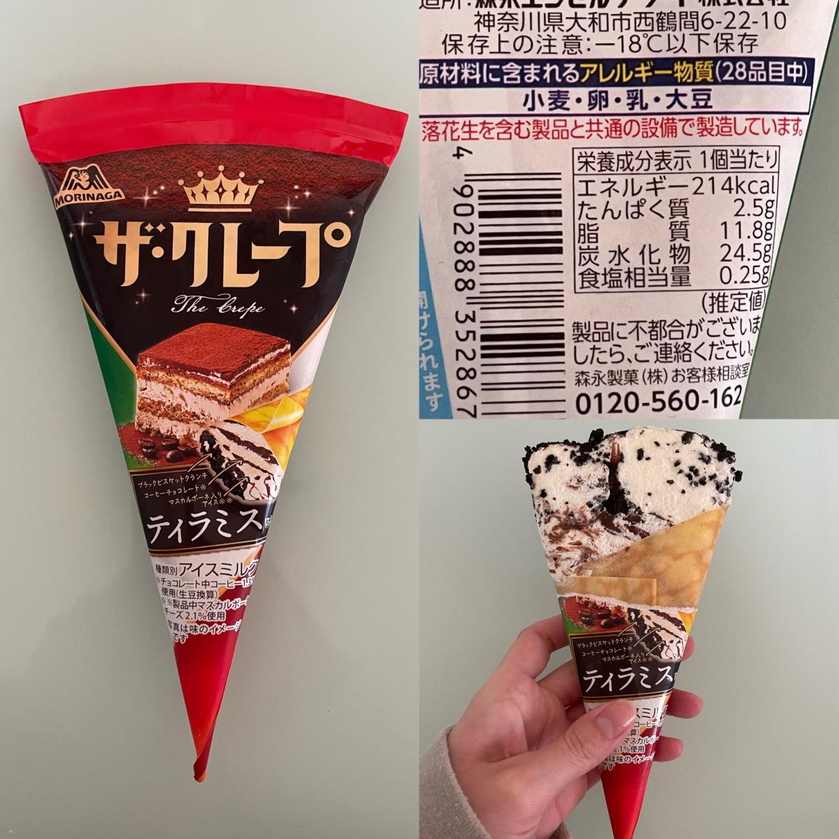 しっとりとしたクレープ生地と、甘いアイスとコーヒー風味があってティラミス感が出ていました。片手でも食べやすいので便利でした。