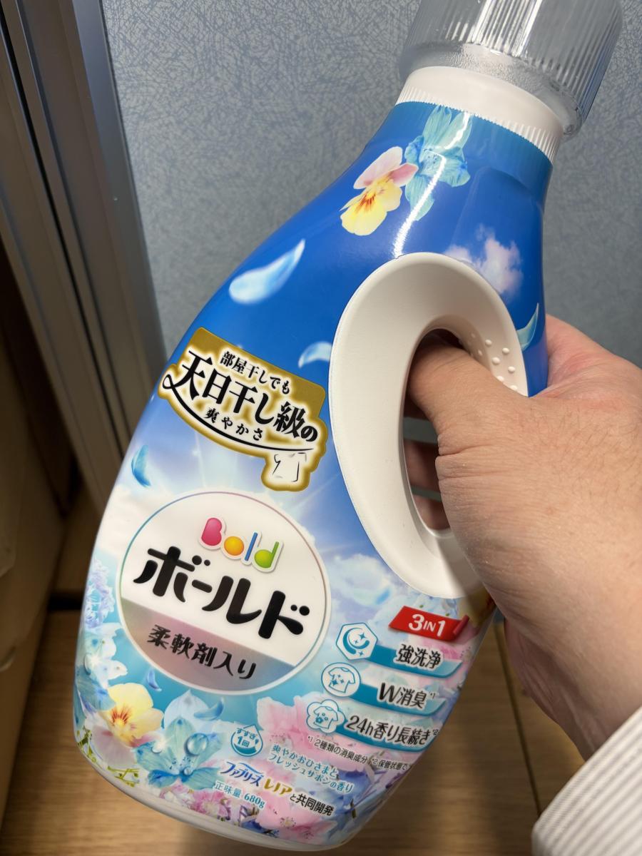 粉末洗剤ではボールドはよく使っていたので液体タイプも買ってみました。この商品はレノアHAPINESS共同開発ということなので柔軟剤入りなんですよ。