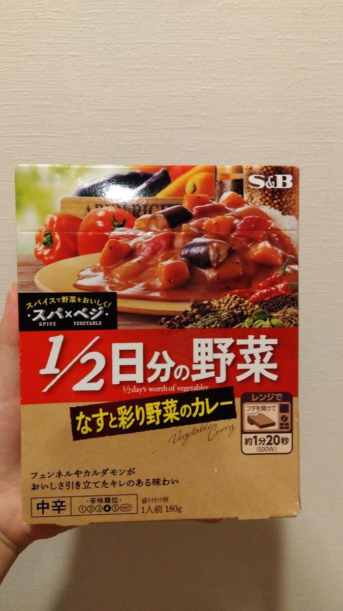 エスビーの「1/2日分の野菜 ナスと彩り野菜のカレー」、レンジでチンするだけなのにすごく美味しくて、感動しました。ピリ辛だけど辛すぎなくて、しっかり旨みがあってちょうどいいバランス。