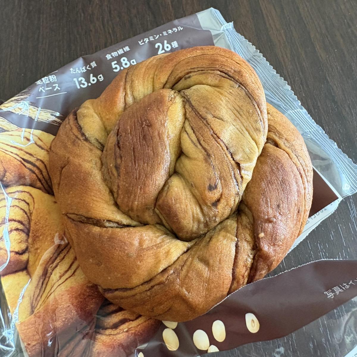 全粒粉ベースのパンを買ってみました。チョコ風味でしたが、パンを握った感じがねっとりしていて、顔に近づけると、ほんのりチョコレートの香りがします。齧ってみると、触った感じのねっとり感はそのままに、モチモチしています。チョコレートの味もしっかりしていて、パッケージ裏の成分表にある通りの効果を期待してしまう味わい。ちょっと食べにくさもあったりするので、トーストするのがオススメです。