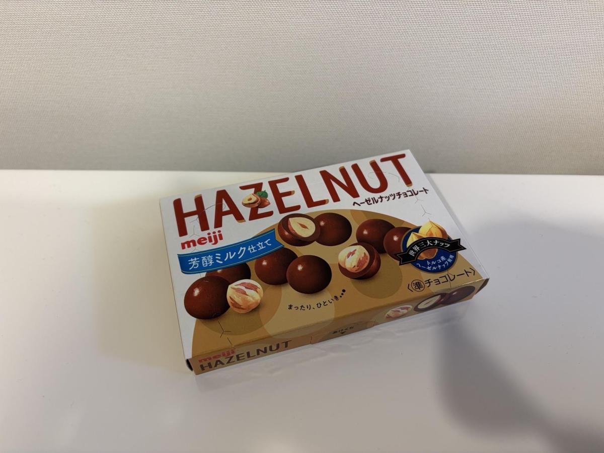 まるごとヘーゼルナッツがはいっていて周りにチョコがコーティングされています。ヘーゼルナッツのカリッとした食感とチョコのまろやかな味わいがマッチしていておいしいです。