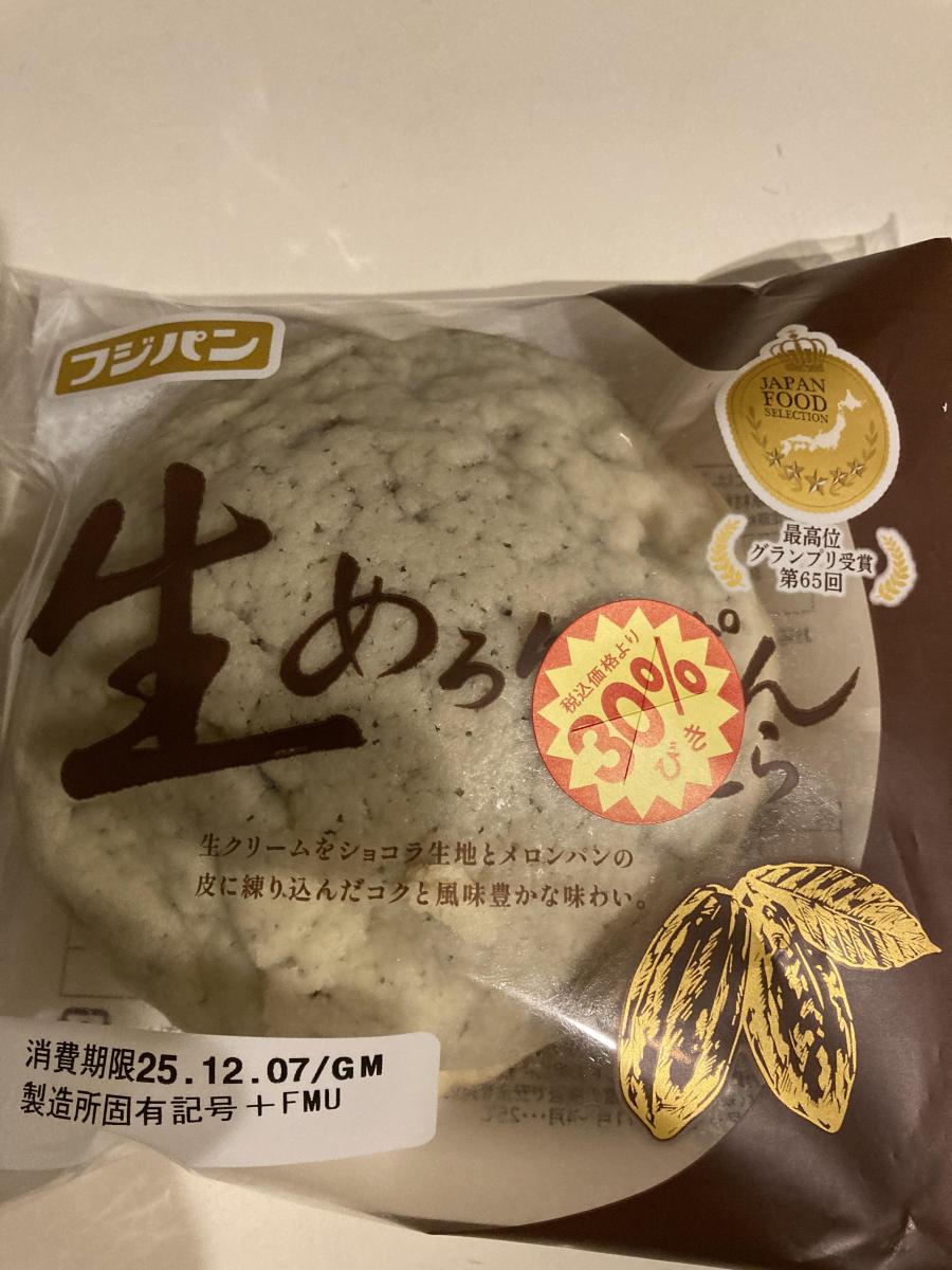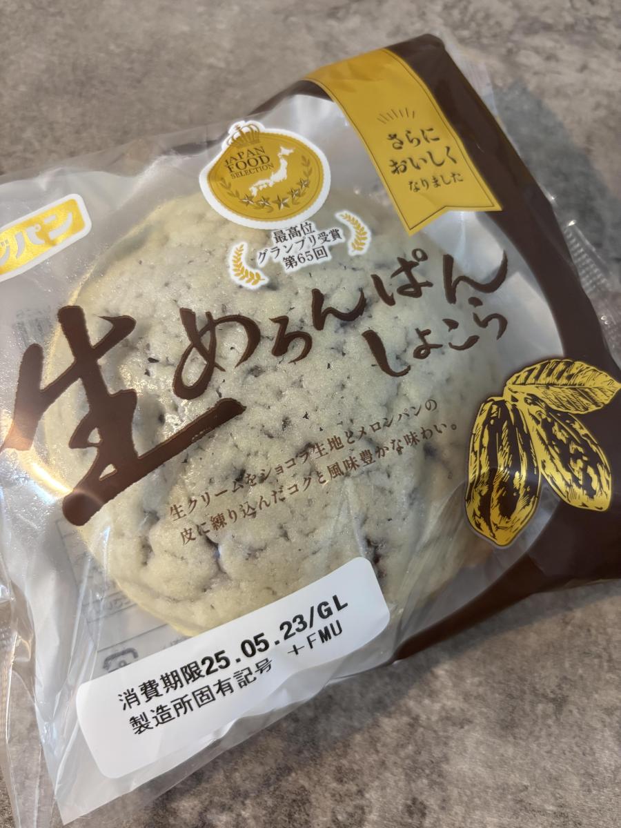 不向きかも。何をもって生と銘打っているのかわからないが、普通のメロンパンは表面がサクサクしているけどこれはしっとり。なんなら袋に張り付くレベル。生地もしっとりしていて、普段のメロンパンはあまり得意じゃないけど、楽しめた。チョコも濃厚。
