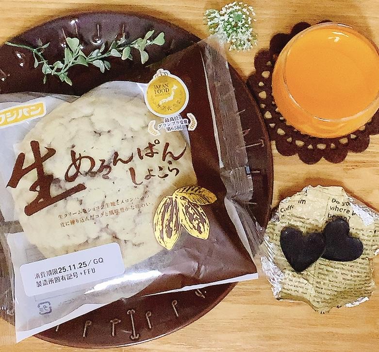 生めろんぱんのネーミングに惹かれてどんな食感か試したくなり購入してみました。外側のパン生地がメロンパン、内側がショコラ生地になっていて、どちらもしっとりふんわりとした食感で食べやすいです。いつもは、メロンパンはサクサク系が食べるのが多いですが、しっとり系も美味しかったです。生クリームの程よい甘さがバランスがいいです。
