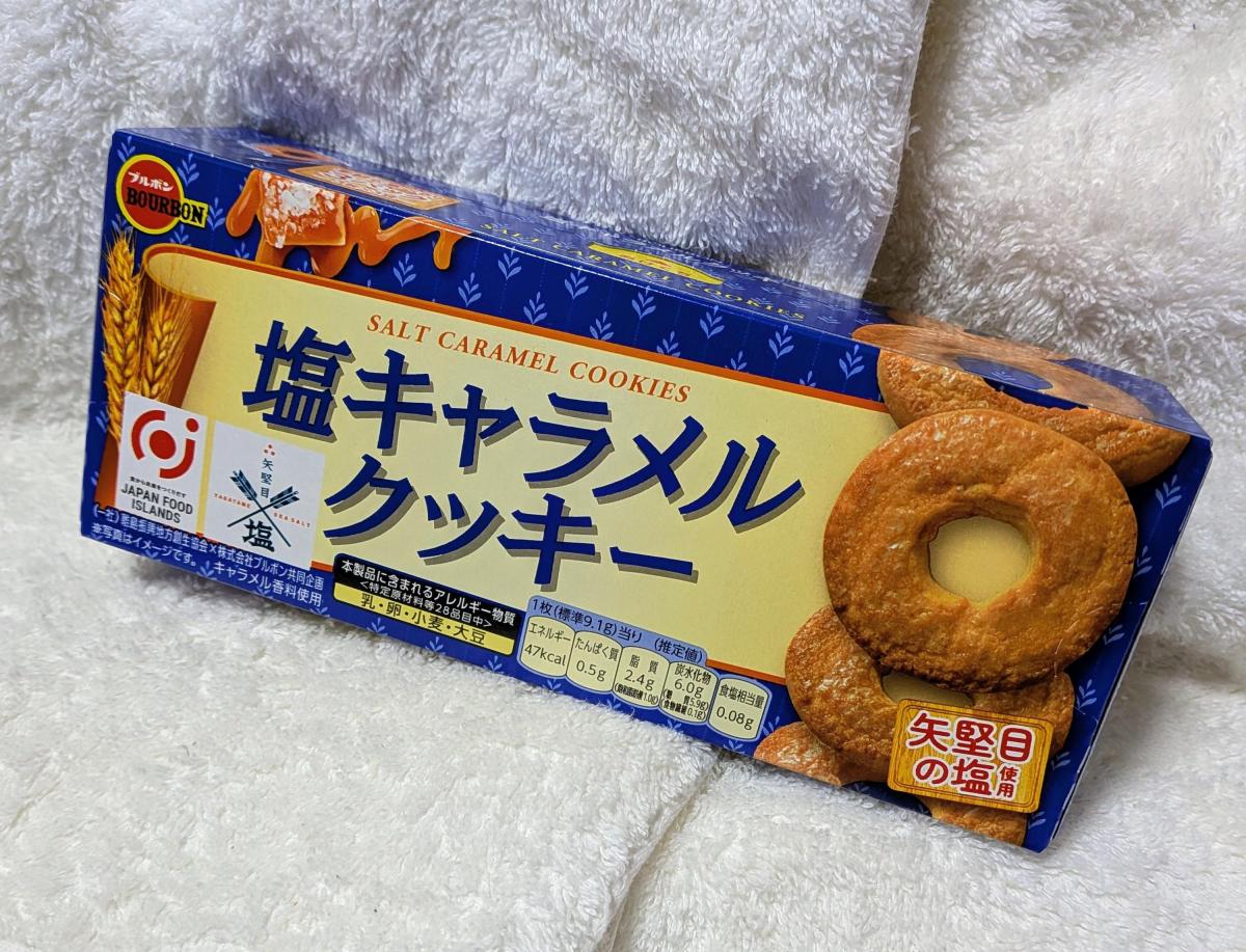 塩キャラメルが美味しそうで買ってみました。ドーナツ型のクッキーで、穴があいているせいか1枚が大きく見えます。最近のお菓子はどんどん小さくされている中で、ちょっと嬉しいサイズ感です。厚みもしっかりあって、食べ応えがあります。
