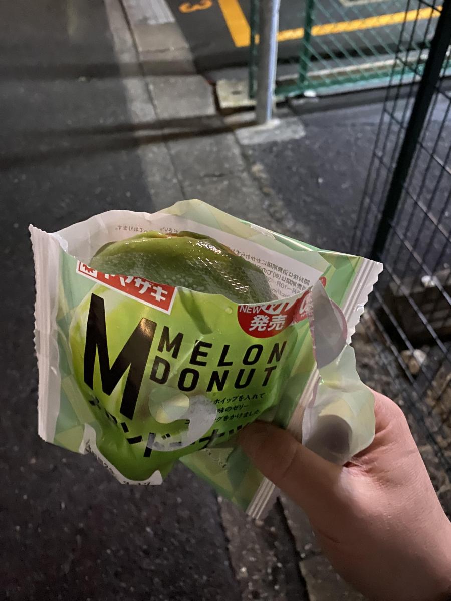 ドーナツの中にはメロン味のホイップクリームが入っていて、ゼリー・ドーナツ・クリームの合わさった食感はよかったですし、味も美味しかったですが、少しメロンの味は弱めに感じました。