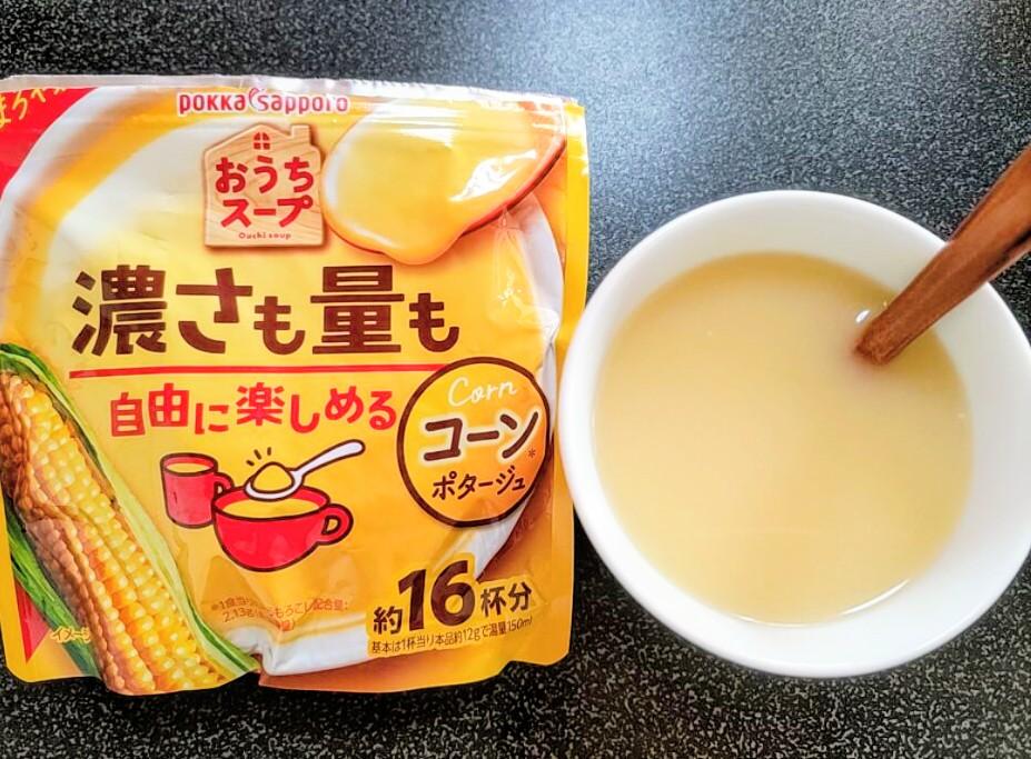 このスープはポタージュなのでコーンの粒は全く入ってはいないが、お湯の量の調整でとろみが出て大変美味しい。