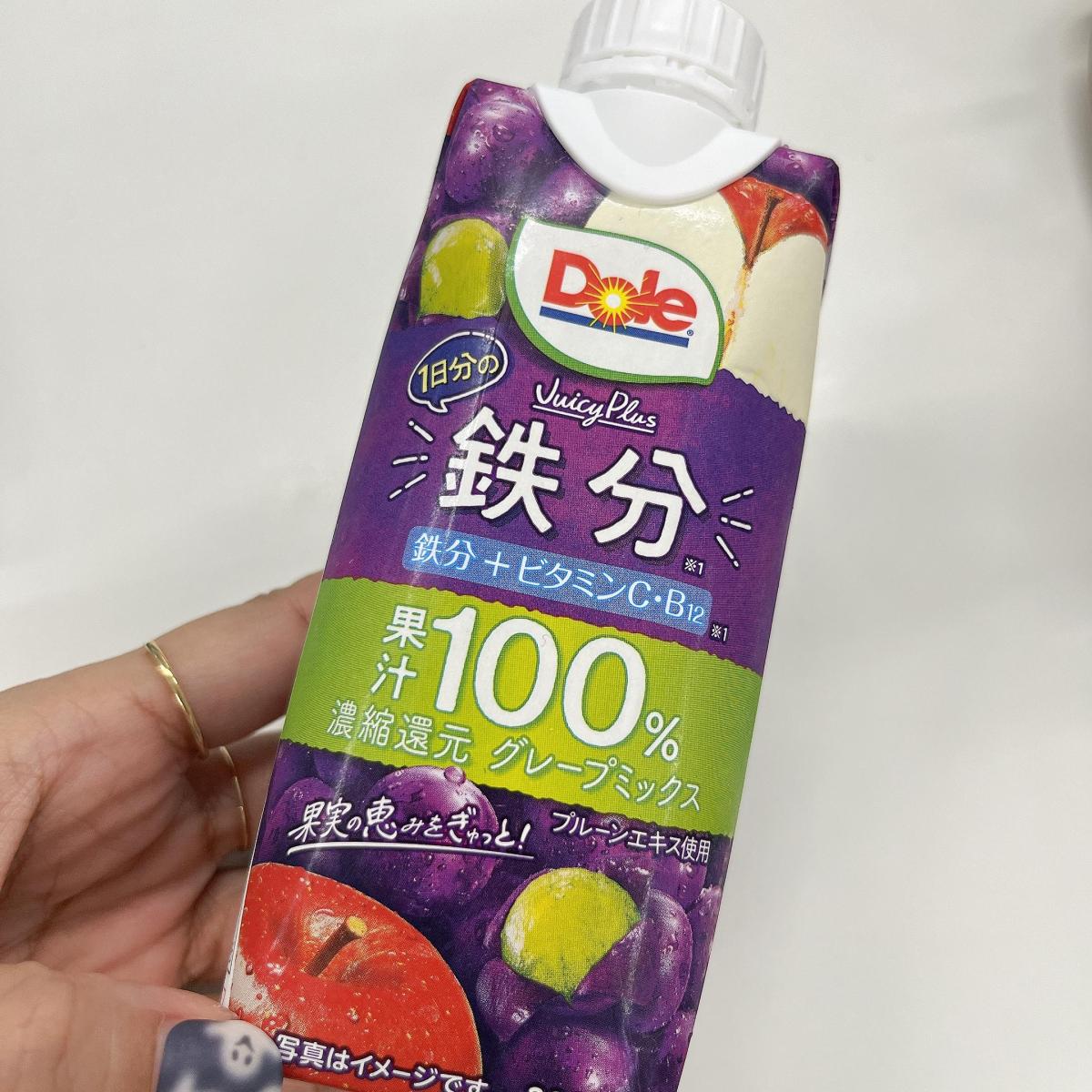 果汁が100%で、おまけに1日分の鉄分が摂れるのがとても良いです。ビタミンも添加されています。味はプルーンやグレープで濃い目な感じでした。