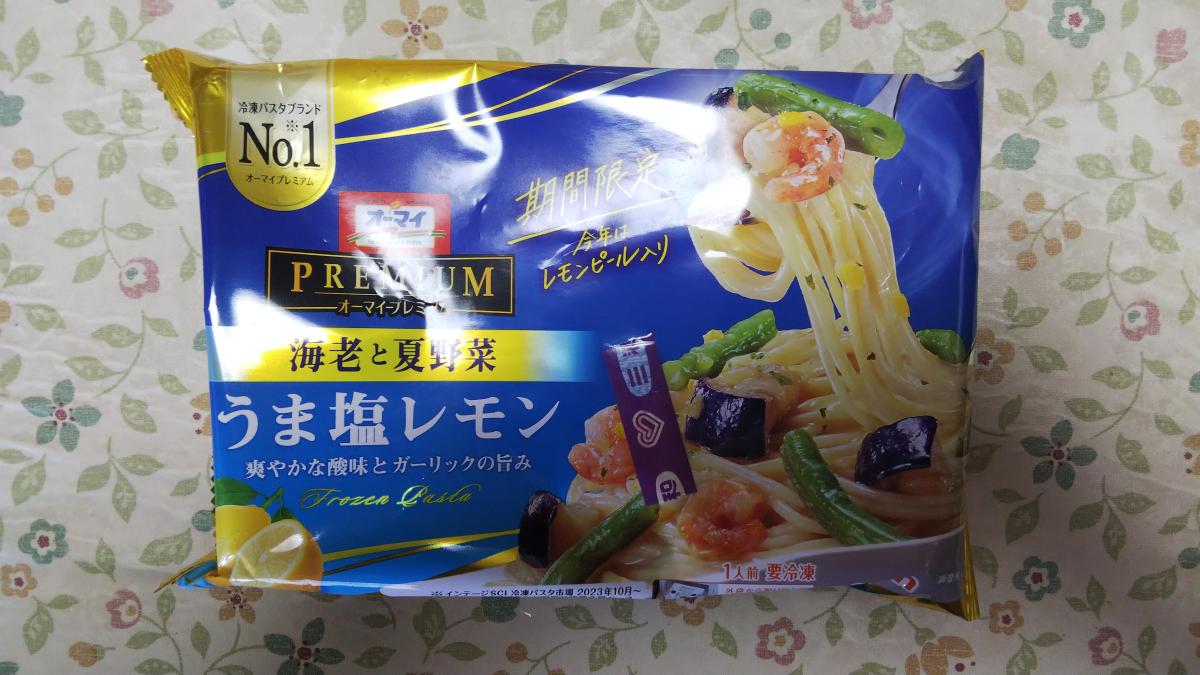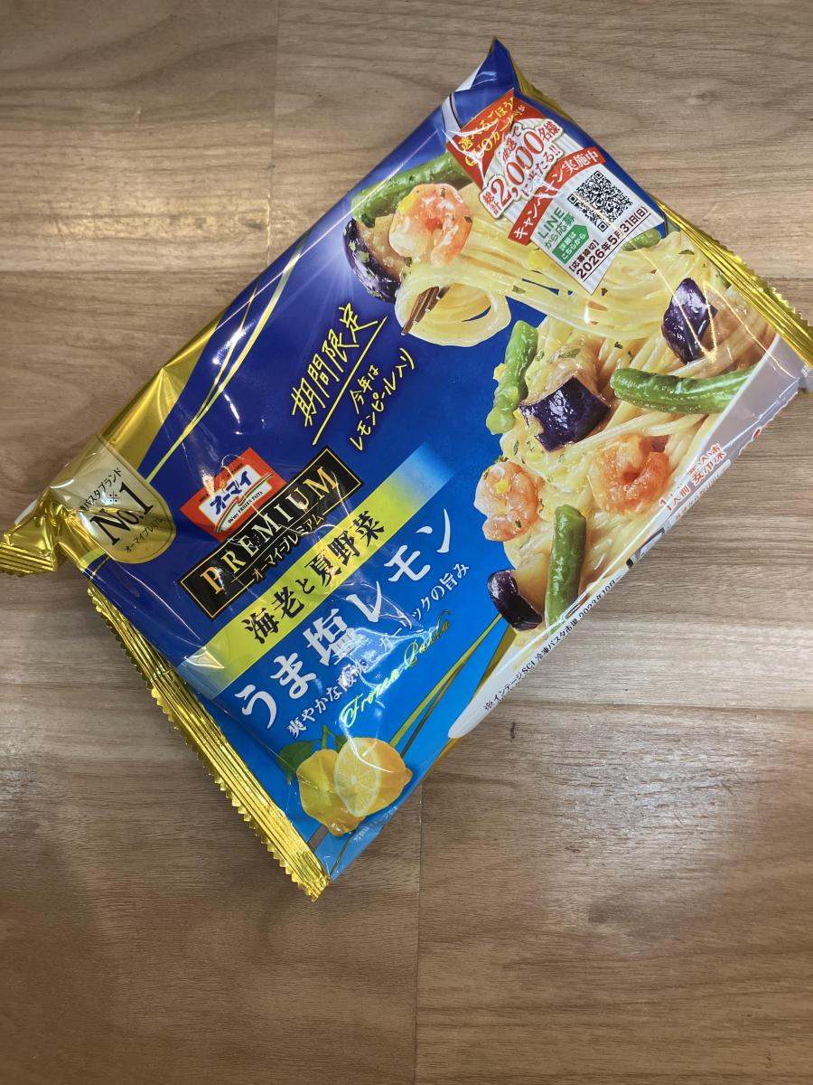 パスタで、うま塩レモンの味付けというのは、珍しいなと思い、買ってみました。海老と夏野菜というタイトルも、すごくそそられました。
