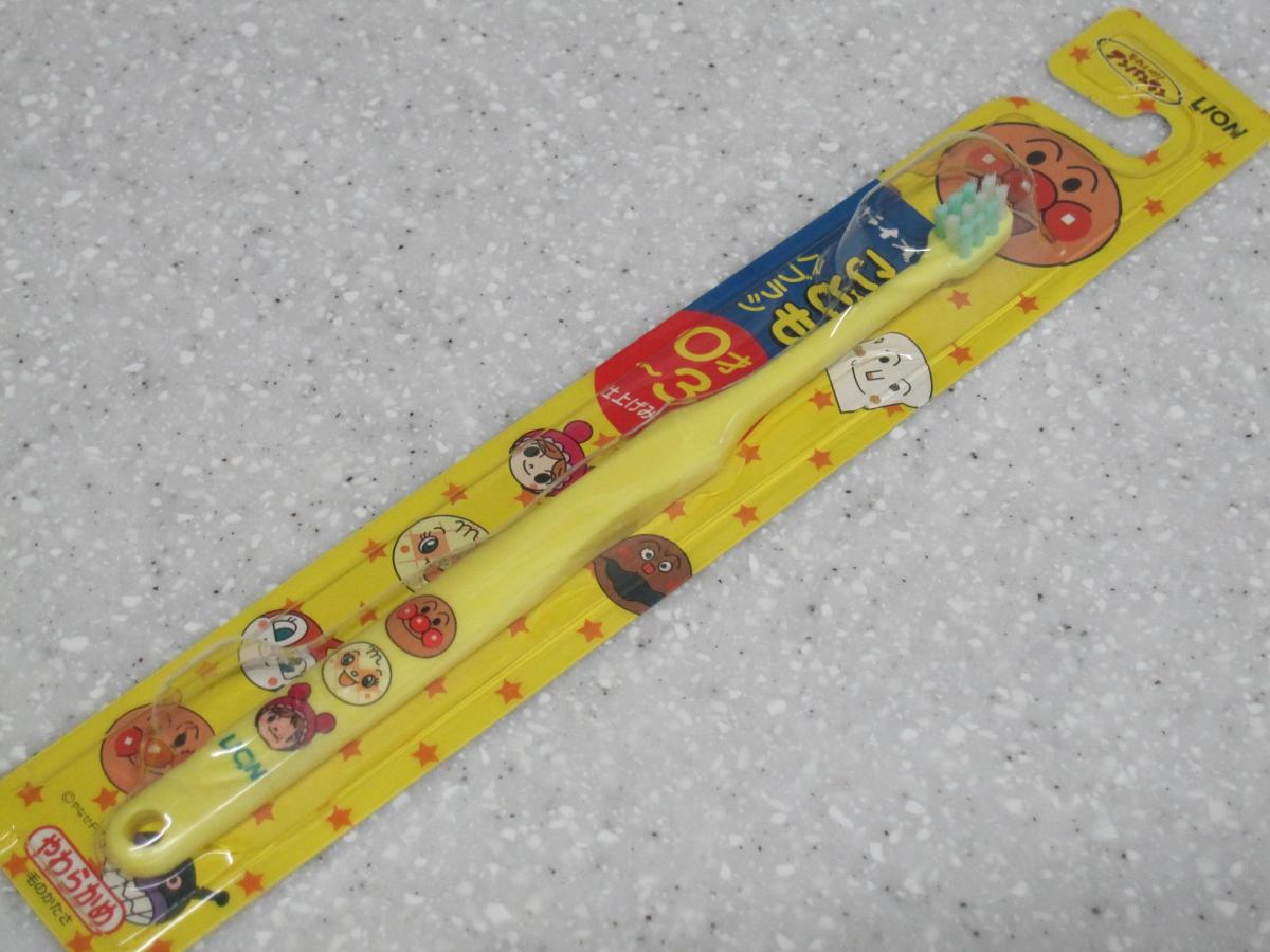 子どもがハブラシの毛先を噛んでしまうので、毛先が乱れると新しいものに取り替えています。数種類あって、その時の気分で子どもが色を選んでいます。お気に入りのアンパンマンの中のキャラクターも柄にプリントしてあります。やわらかで乳歯の仕上げみがきがしやすく、頬っぺたの内側に入る部分が、小さなハブラシです。