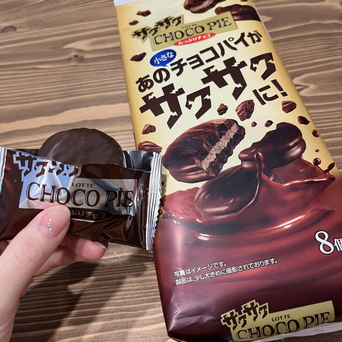 サクサクチョコパイってどんなの?とすごく気になり購入しました。チョコパイよりもしっかりしていて崩れにくく、溶けないのがいいです。食感は砕いたチョコビスケットのようなサクサク感で軽い感じがしました。チョコパイだとチョコの甘さがたっぷりと感じますが、こちらは食べやすい甘さでこちらの方が好みです。