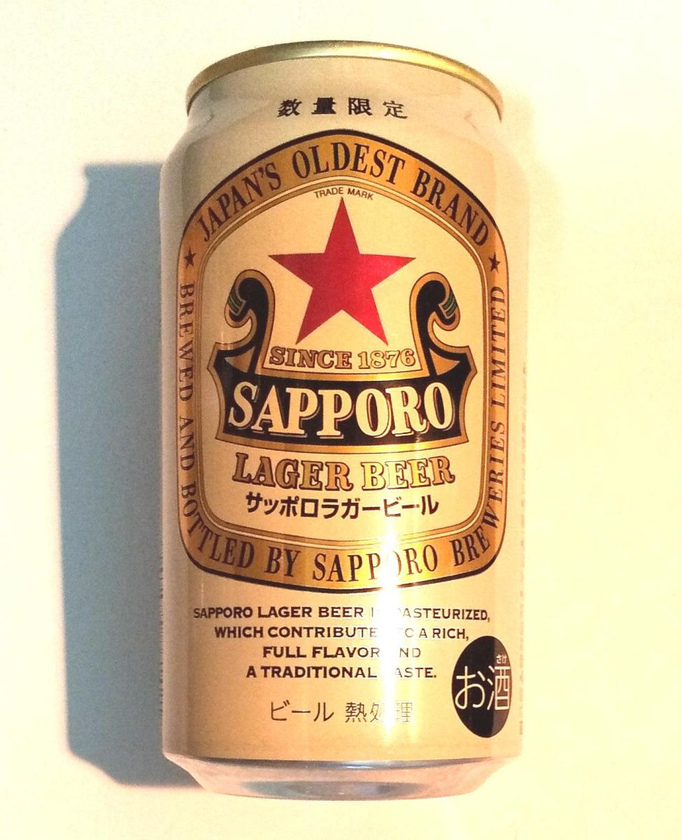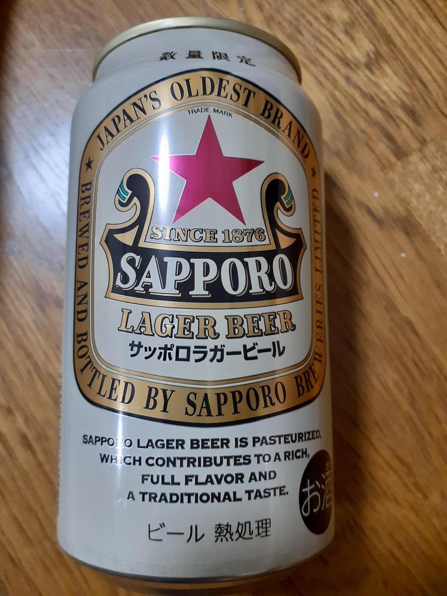 サッポロの最も古いブランド、サッポロラガービールです。のどごし、キレよく、正面からのパッケージかっこよく、後ろもノスタルジックなきれいな缶です!