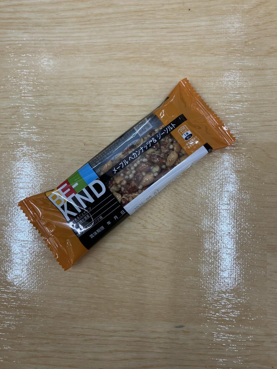 メープルも好きで、ナッツも好きなのでこちらはとても好きでした。一本で食べ応えがすごくあり、ナッツなのでよく噛むので腹持ちも良かったです。塩気もしっかりあったので、後味スッキリしていました。ご褒美感のある美味しさです。