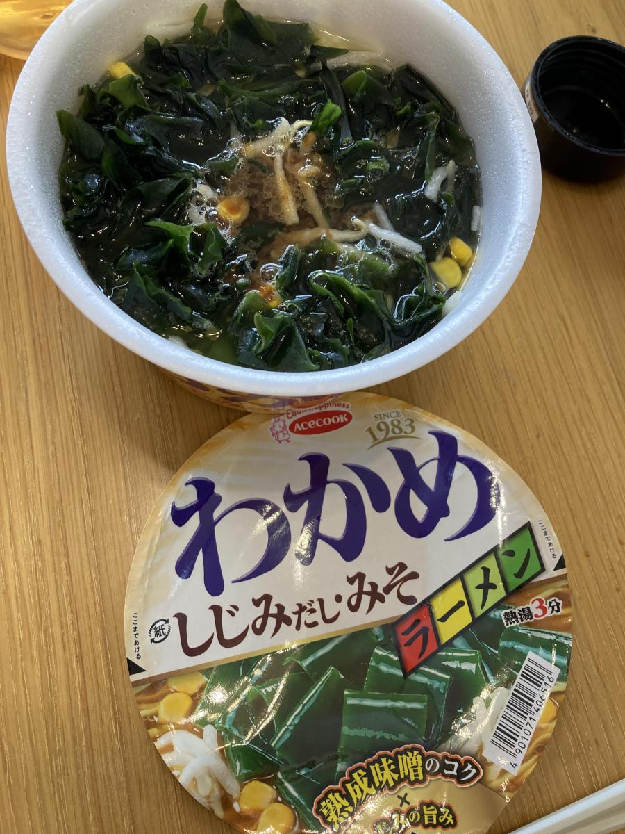 わかめラーメンから、しじみだし・みそがでました。わかめラーメンが大好きなので、とても楽しみです。