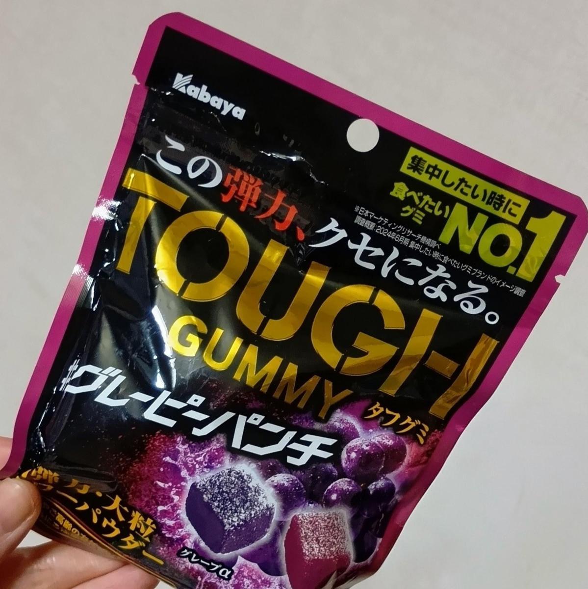 最近タフグミにはまっており、グレーピーパンチ味を食べていなかったので気になり購入してみました。いっぱい入ってて、ボリュームあります。ハードな感じの噛み応えがしっかりとあり、食べ応えがしっかりとあります。サワーパウダーがシュワシュワとして美味しいです。どちらも噛めば噛むほどグレープのジューシーさも感じられ大変美味しい味わいでした。