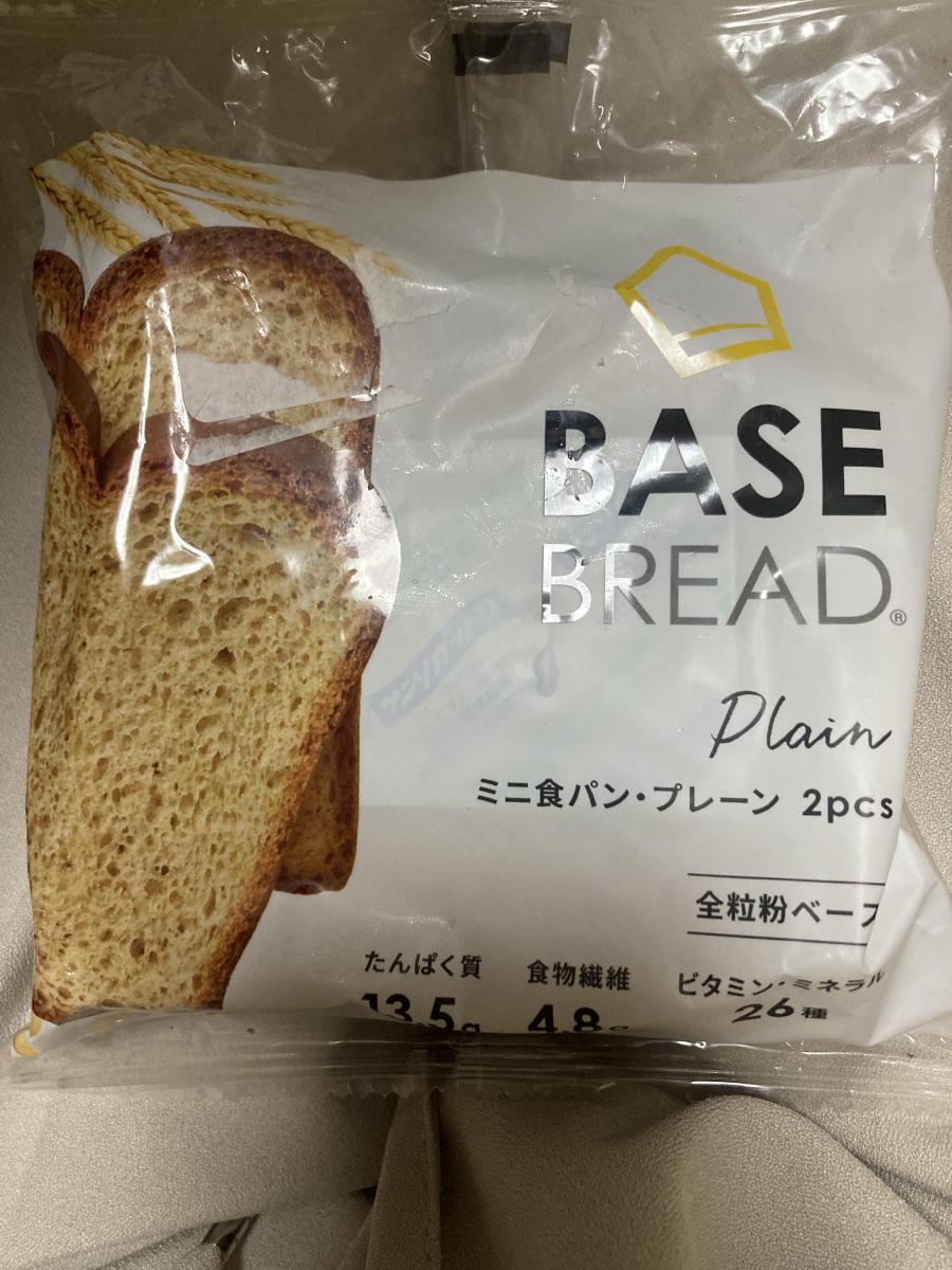 ベースブレッドのプレーン、ミニ食パン2枚入りです。栄養豊富なパンが気楽に食べれて接種できるので、このシリーズはすきです。小麦全粒粉なので色は茶色でミニ食パンながら満腹感があり昼飯などに丁度良いです。食べると、ほのかに甘みもあるので、そのままでも美味しいです。または小腹がすいた時などにも良いとおもいます。