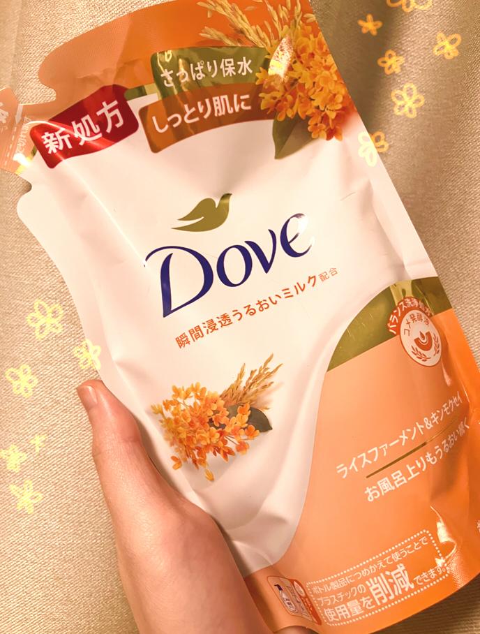 ダヴは少量でも泡立ちがよくとてもクリーミー。お風呂上がりでも潤い続くしキンモクセイの優しい香りに癒されます。