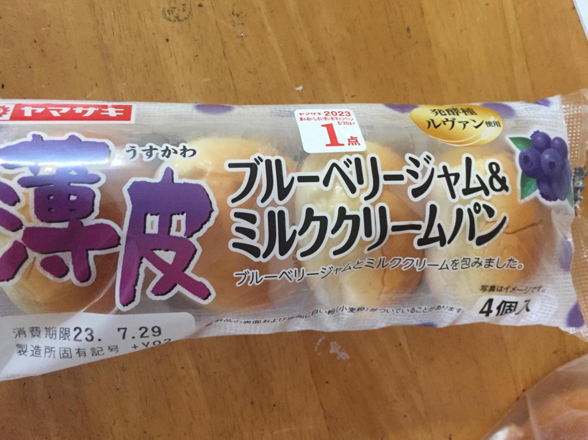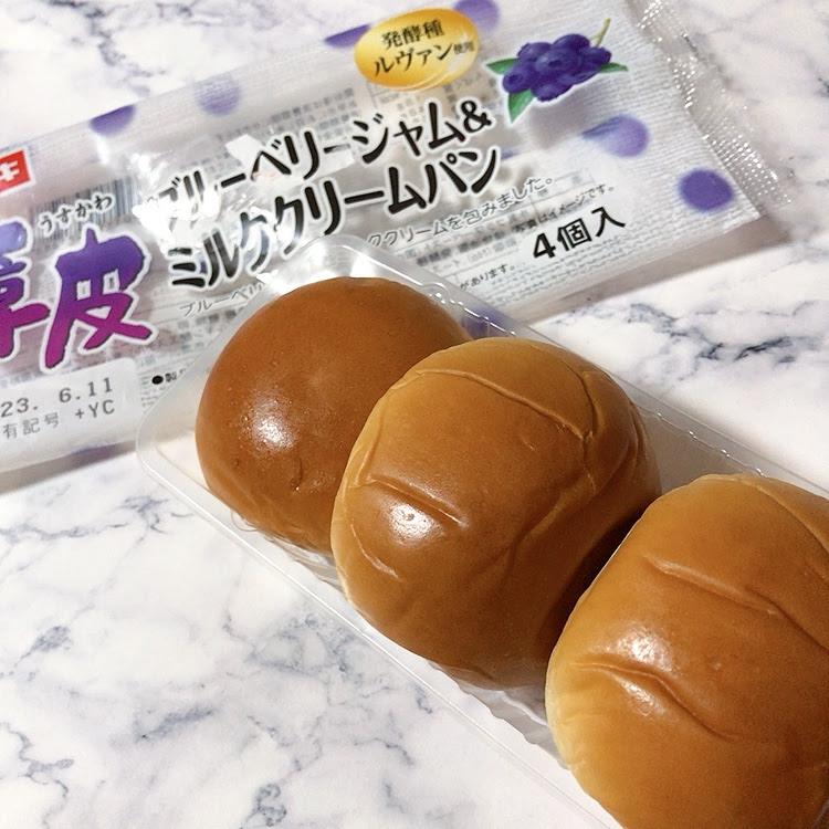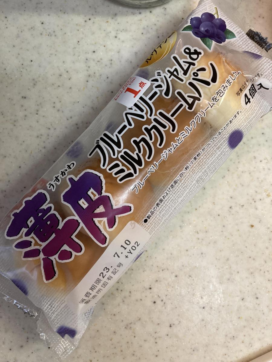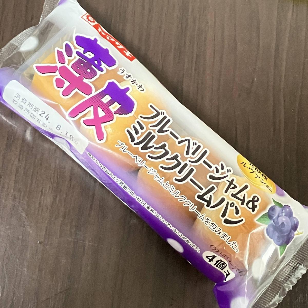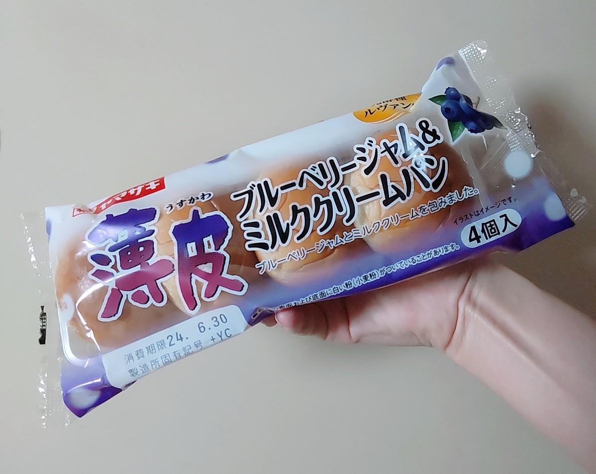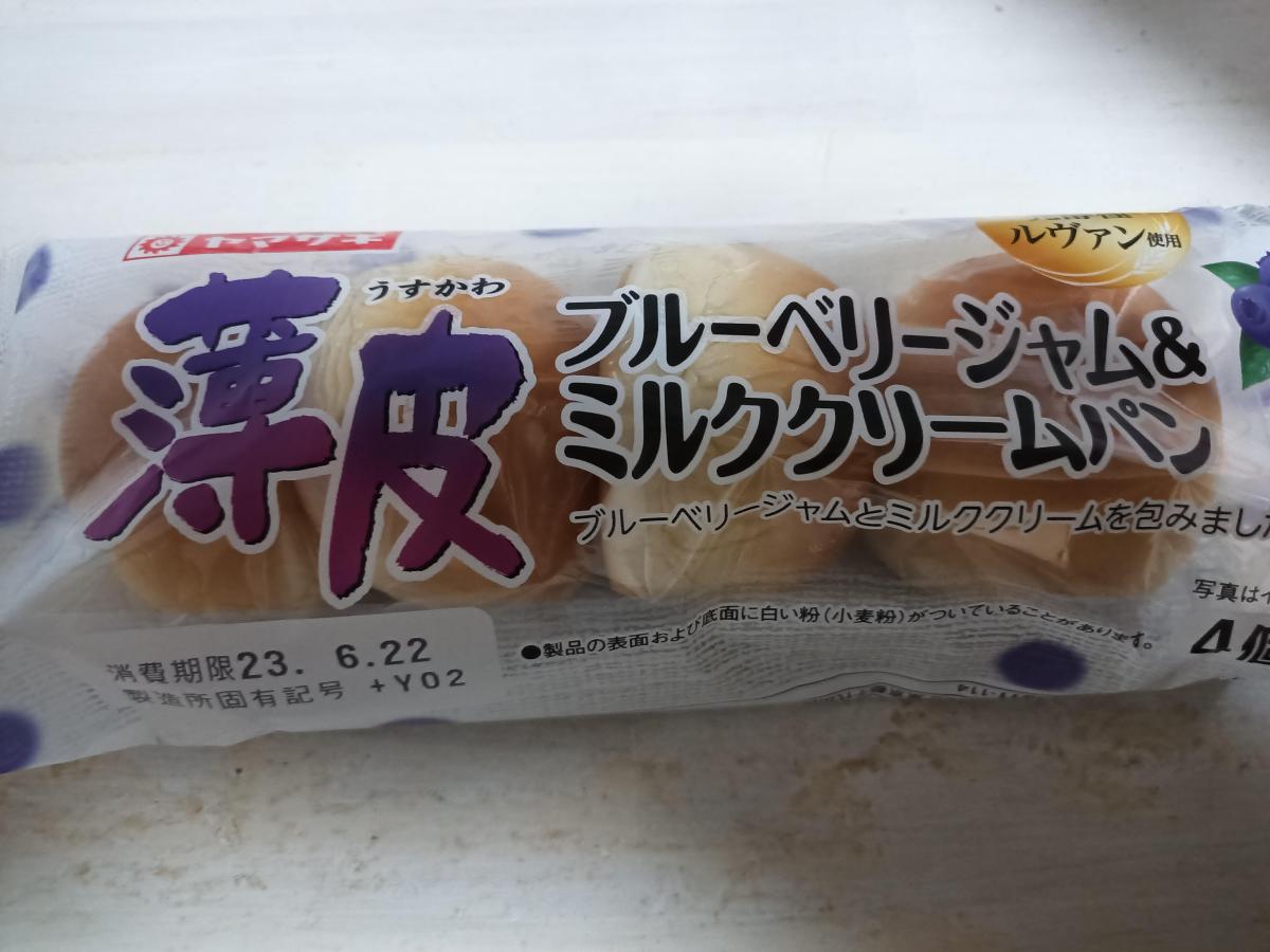 包んでいるパンは薄くて中に入っているクリームを堪能できます。中にはブルーベリージャムがたっぷり入って、甘さ控えめでした。ミルククリームのお味も良く後味もしつこくなく美味しかったです。4つに減量してしまったのが残念です。