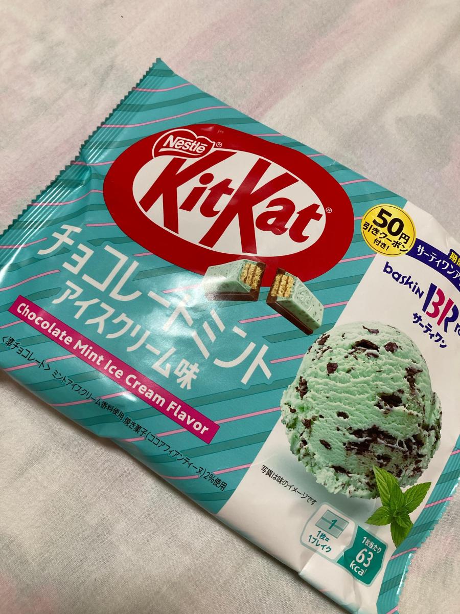 キットカットさんからサーティーワンチョコミントがコラボということで即購入。