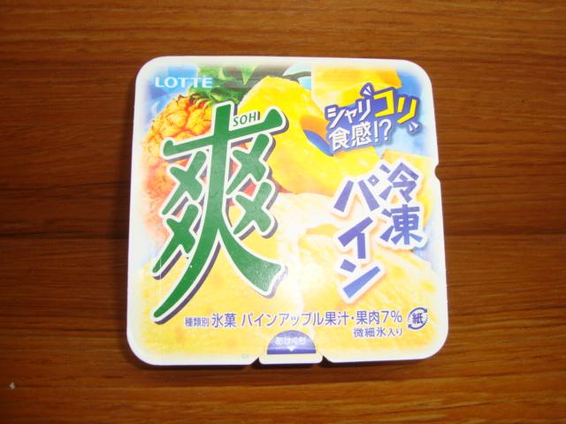南国の果物の代表格のパインアップルの果汁をぎゅぎゅ~っと詰め込んだような、冷凍パイン風味の爽を買ってみました。