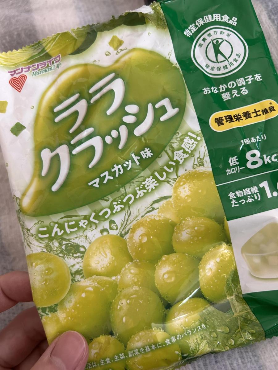 マスカット味が爽やかで美味しく気に入っています。食感もプルプルで美味しく、こんにゃくのヘルシーな感じも嬉しく気に入っています。程よい甘さで食べやすいです。