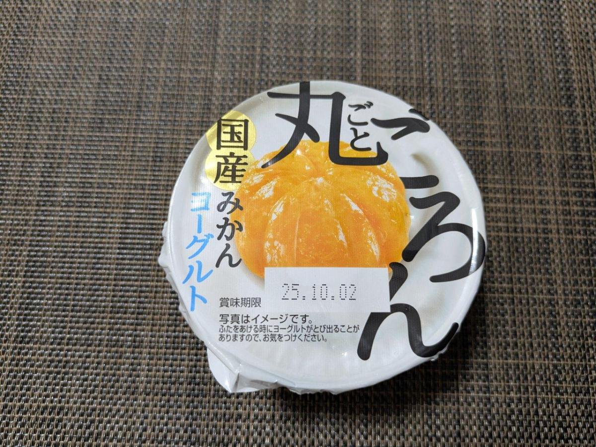 たまたま、ローソンで見かけて印象的なネーミングのごろん丸ごと~にひかれて購入しました。本当にパッケージの丸ごとみかんが入っているのだろうか?ドキドキ。オープン!ほんまや、すでに見えていました。ヨーグルトを優しくかき分けて、丸ごとみかん登場。インパクト大。スプーンで持ち上げてみたり。ミカンも甘くて美味しかったです。丸ごとみかんの衝撃が強くて、ヨーグルトの味の存在が薄れますが、甘さ控えめで丸ごとみかんを引き立てていて美味しかったです。また購入したいです。ご馳走さまでした。