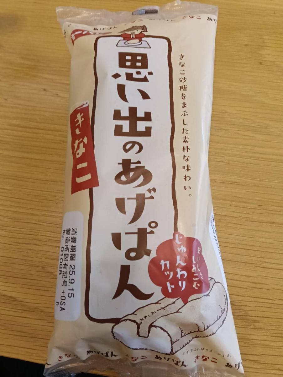 昔、給食で食べていた思い出のあげぱんとは、別物でした。結構な油っぽさのある、コッペパンに、少〜しだけ、きな粉が、かかっている程度で、砂糖の甘さと油っぽさだけが、口に残りましたね。思い出のものとは違うので、リピないです。
