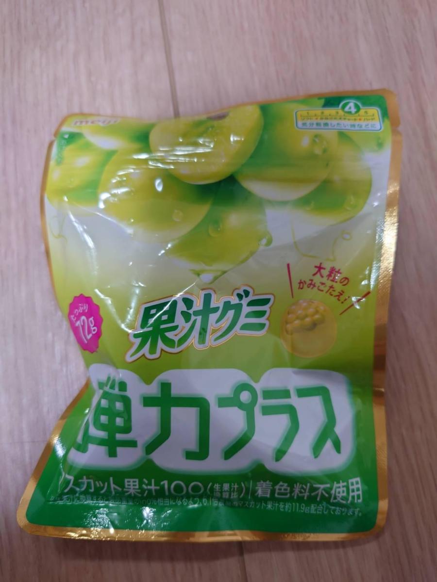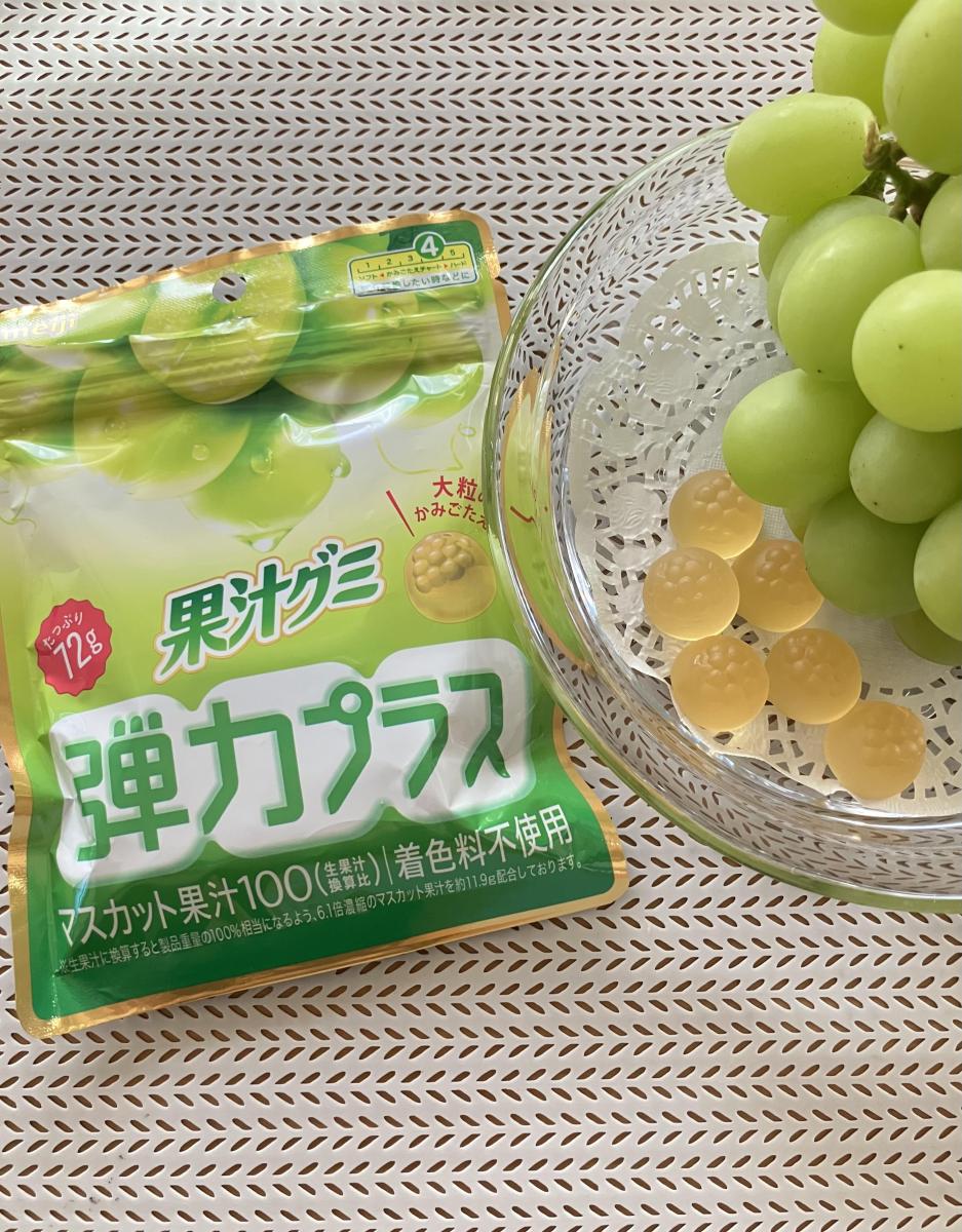 弾力プラスという名前の通り、ハードな噛み応えはもちろん、しっかりとした弾力がありました。一つが大きくて、集中したいときにぴったりのグミでした。マスカットのフルーティな味が甘くて美味しいです。