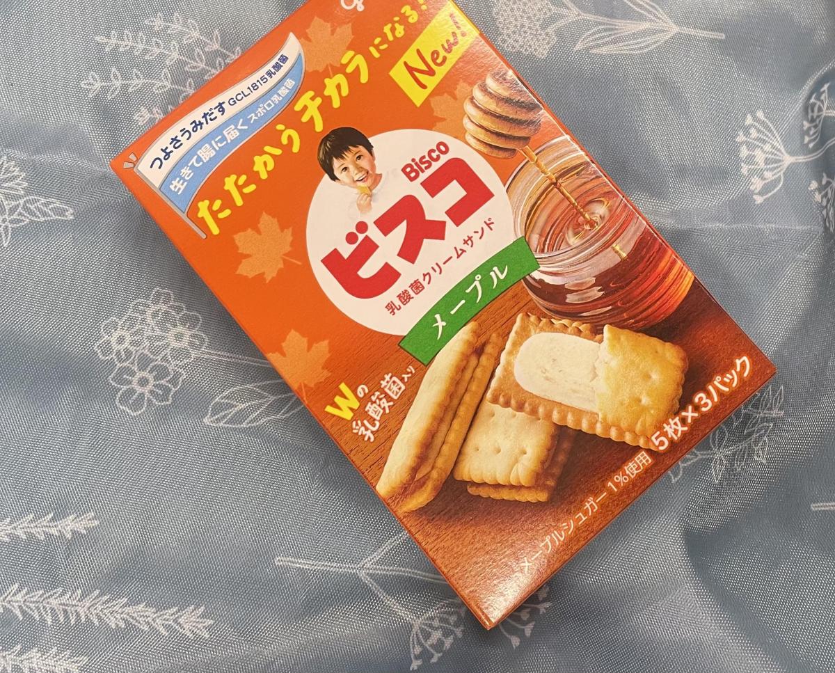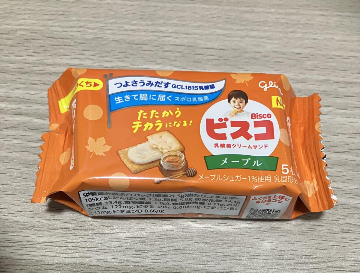 昨年からどハマりしているビスコシリーズ。ビスコの中なら発酵バターが1番好きでリピ買いしまくっているのですが、たまに味変したくてメープルを購入しています。