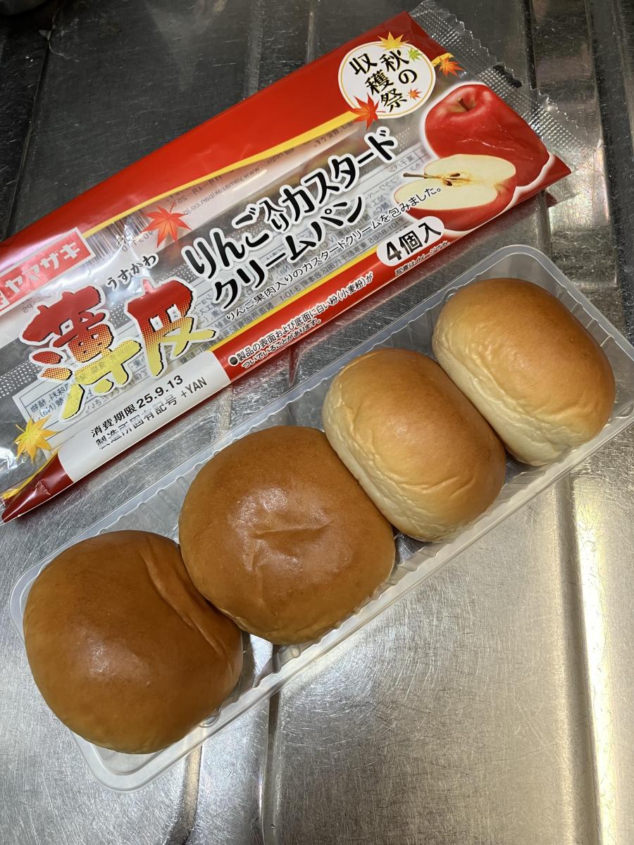 薄皮りんご入りカスタードクリームパンとカスタード好きには気になるネーミングに惹かれて購入してみました。4個も入っているのでお得な感じがします。外側はつぶれそうなくらい柔らかいふんわりしたパンで軽くて食べやすいです。リンゴが果肉になっていたのが高ポイントでした。カスタードもしっかりと感じられ大変美味しかったです。