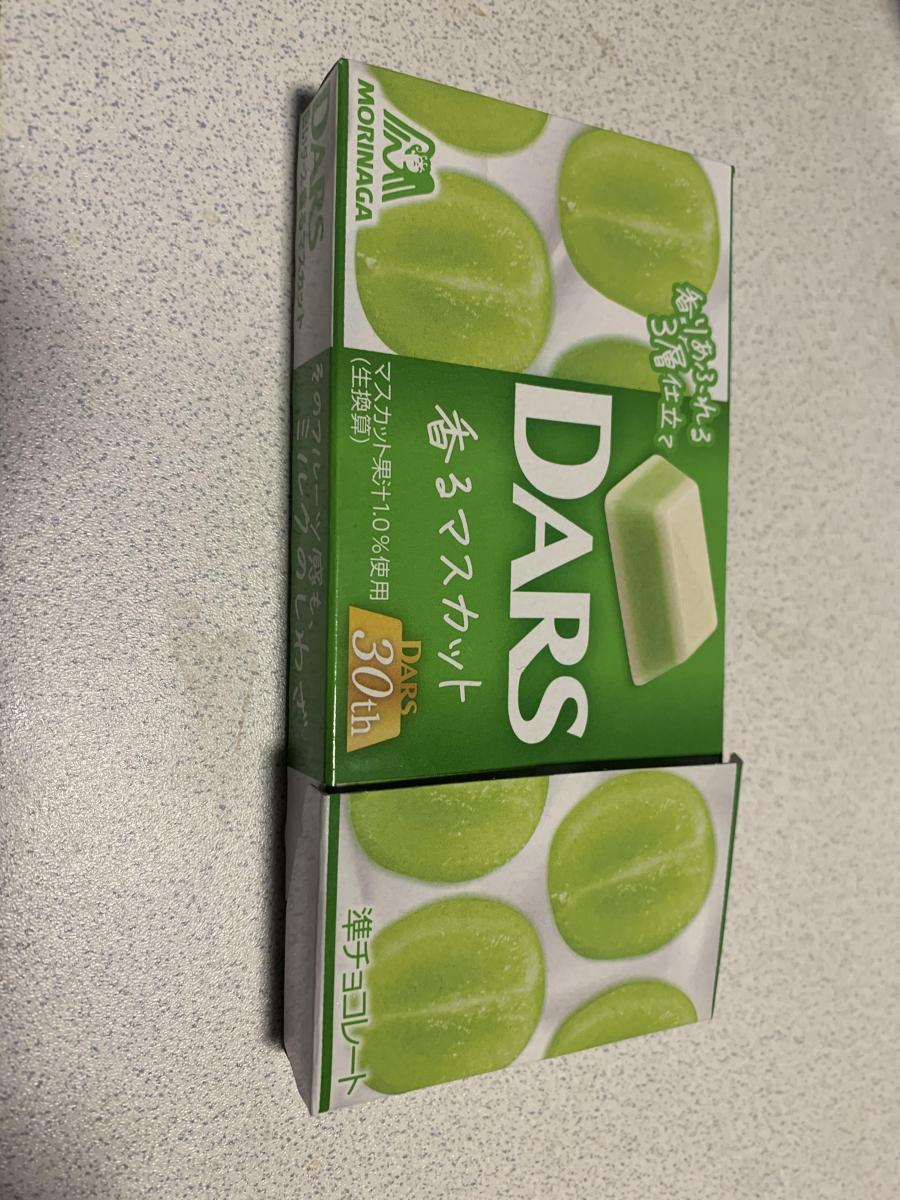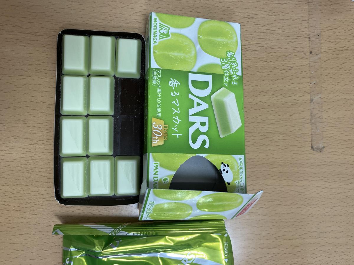 おーこれは、香り高いなー!マスカットの香りがします、3層仕立てでホワイトチョコとマスカットになってて見た目はハイチュウのようです