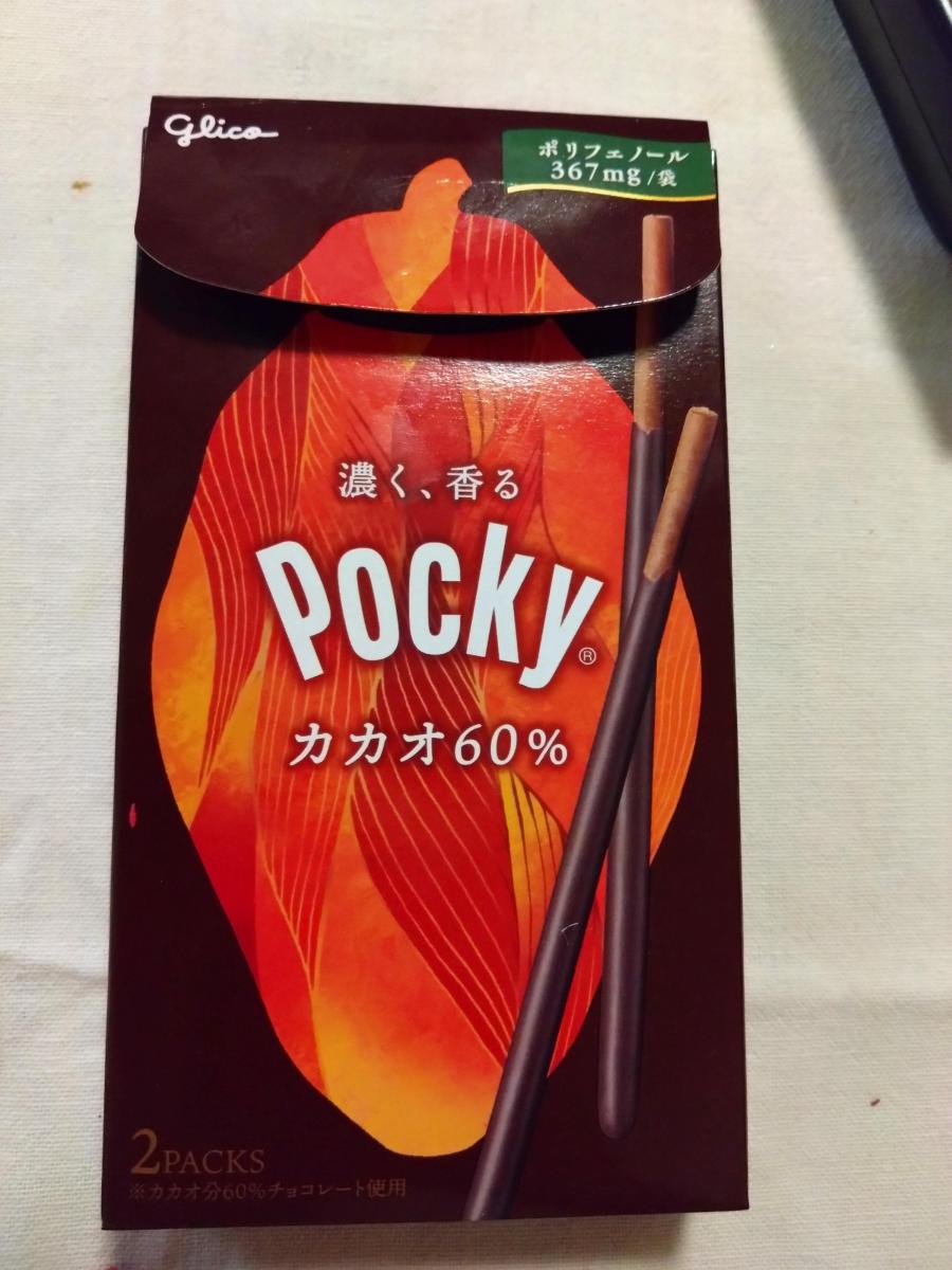 緑の箱のメンズポッキーだったか、ビターポッキーを最近見なくなったので、こちらのビター味が売り出されてよかったです。