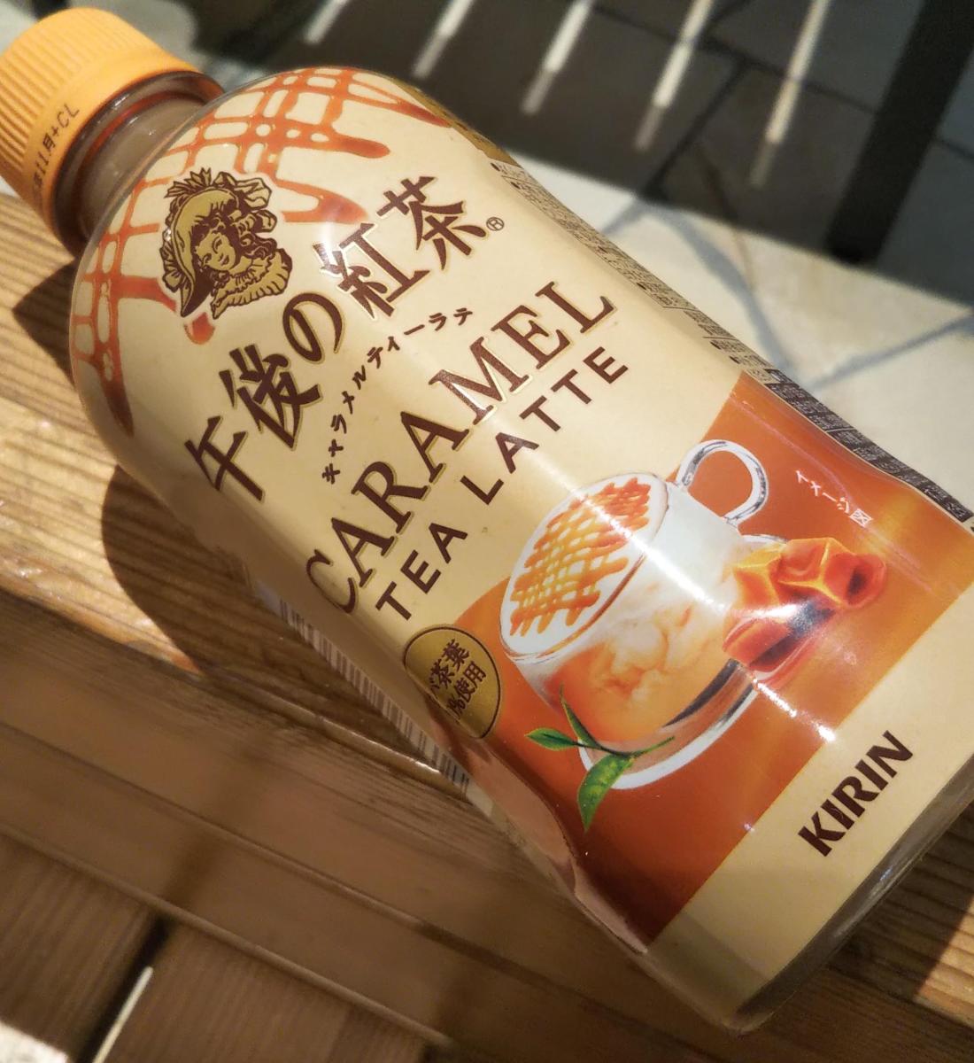 美味しそうなパッケージに惹かれて購入しました。午後ティーのキャラメルティーラテ。