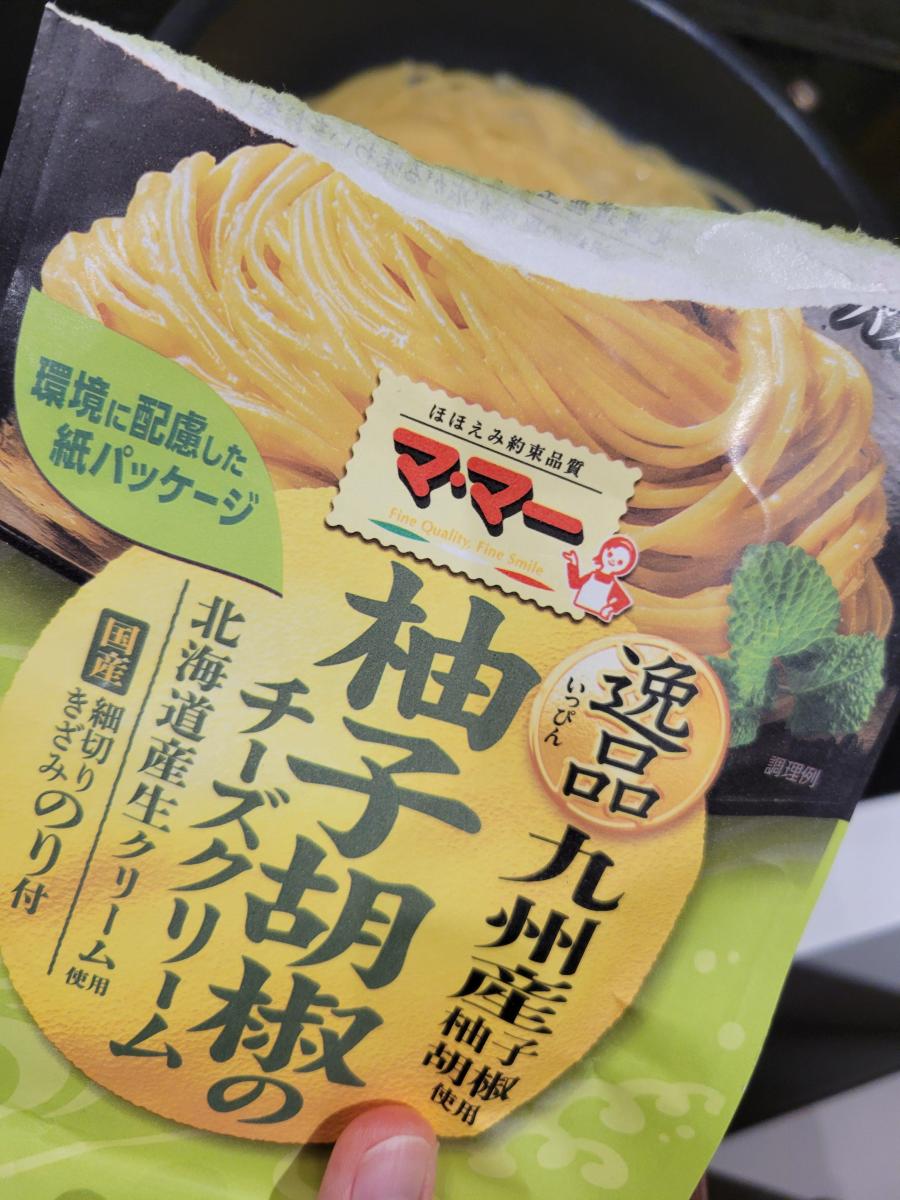 ママ―柚子胡椒チーズクリームのパスタソース。土地柄だからか柚子胡椒は大好きですがチーズクリームとの相性は??とちょっと躊躇したソースです。