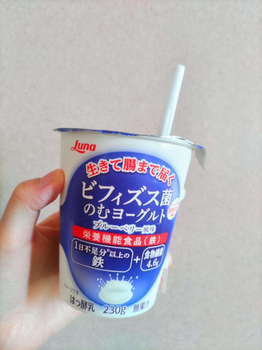 ビフィズス菌飲むヨーグルトのブルーベリー風味ですが、無果汁なのにきちんとブルーベリーの味がして飲みやすかったです。230gなので、ごくごくたくさん飲めて満足感さえもあります。鉄、食物繊維も1日不足分以上取れて(以上って凄い)嬉しいですね。