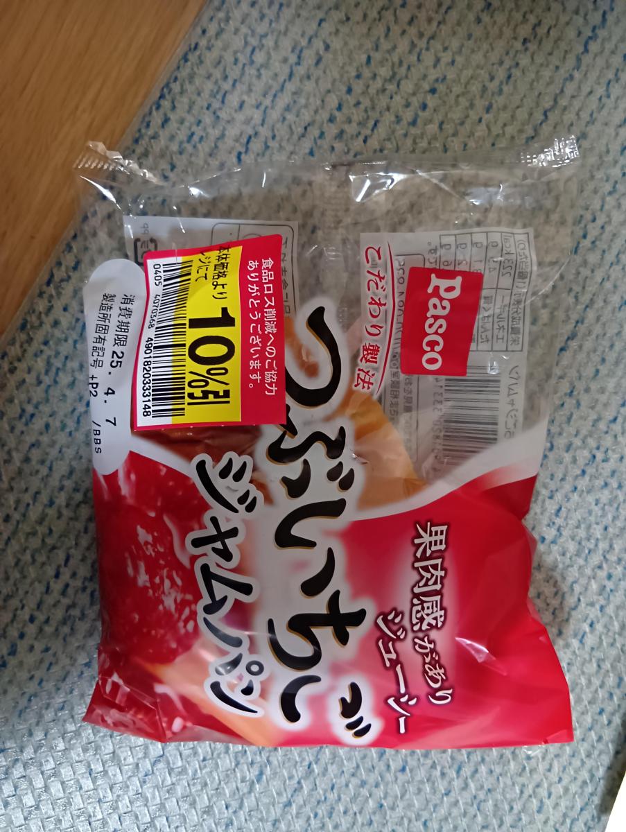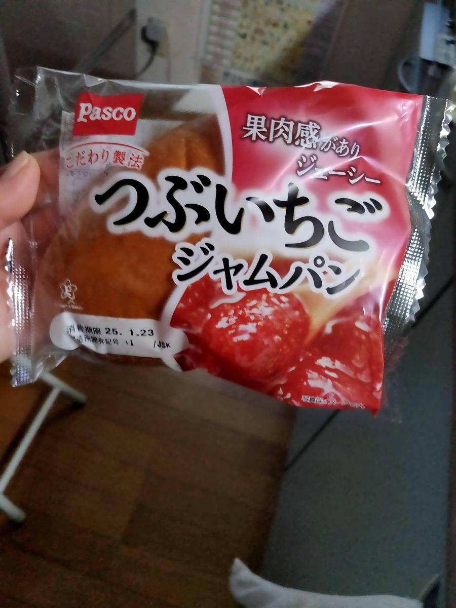 pascoさんのつぶいちごジャムパンです。湯種製法でパンはやわらかく仕上がっており、しっとりしていました。消費期限が近づくとややパサツキもありました。いちごジャムは果肉感があり、甘みは程よくジューシーです。中に割とたっぷり入っています。カロリーもそこまで高くないので少し食べるのにもちょうど良いと思いました。