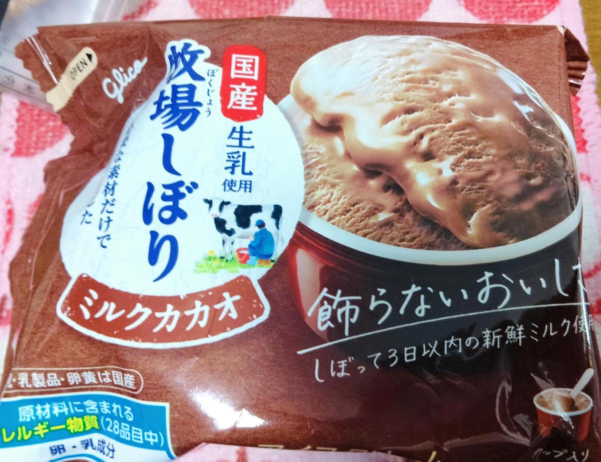 ミルクカカオ味ということで、ミルクのコクを感じるクリーミーなカカオ味です。とろ〜りと舌の上で溶けていくようななめらかさを感じるアイスです。ココア味なのにミルクの存在感が強いとこほがさすが「牧場しぼり」です。