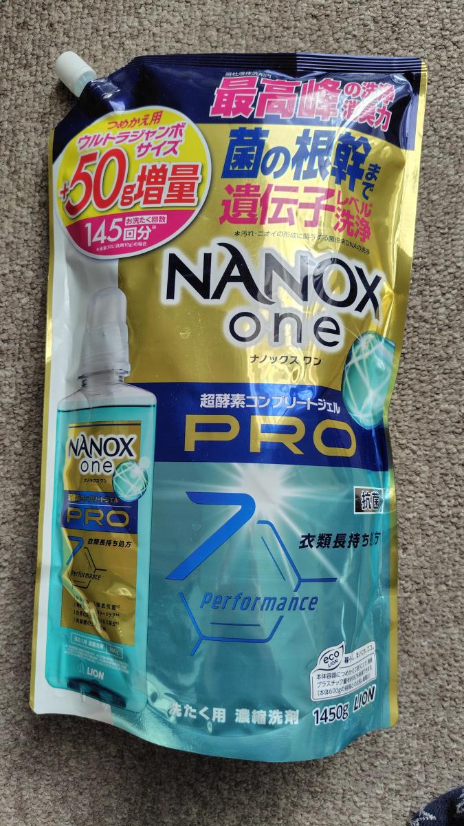 新しいナノックスシリーズの中でもお値段が少し高めのPROです。使ってみると期待通りのしっかり高い洗浄力があり、除菌効果のためかしつこい匂いも消えます。