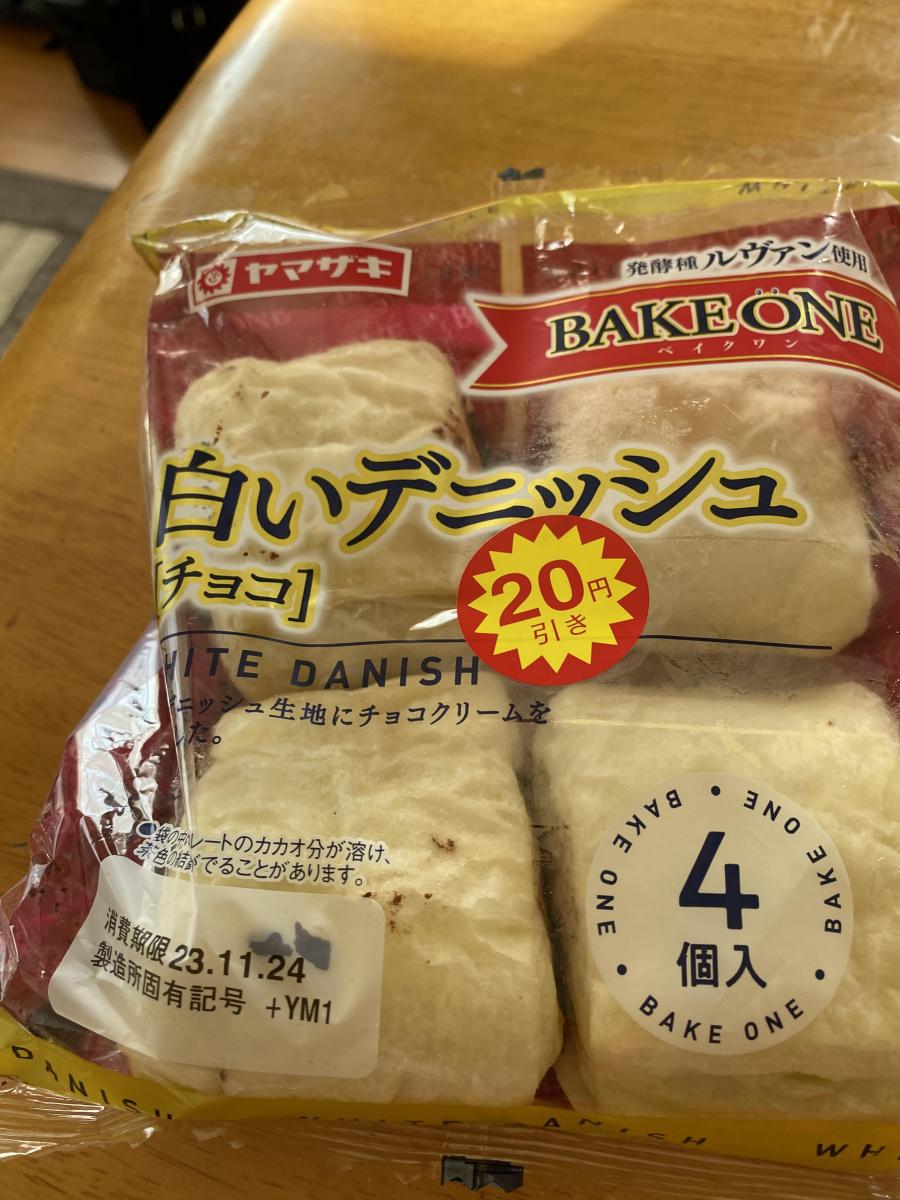 しっとりした白いデニッシュ生地にチョコがサンドされています。デニッシュでも油っぽさがないのであっさりしていて、甘さも控えめです。1つの大きさがちょうどいいので子供たちも朝ごはんに食べるのにぴったりです。チョコレートがもっと入っていたら嬉しい。