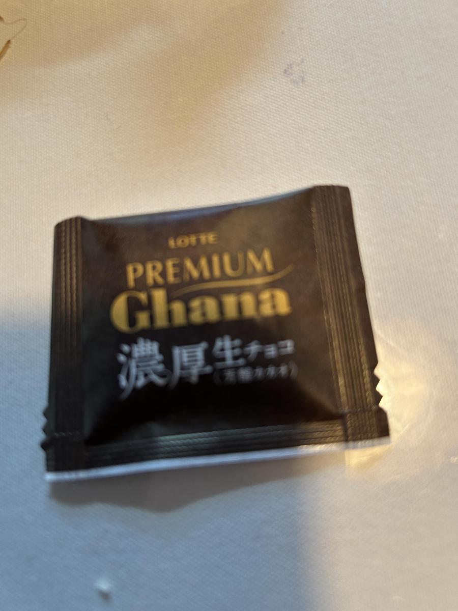 プレミアムガーナ パッケージも高級感があり食べてみたくて買ってみました。一つ一つ個包装になっており正方形の薄いチョコレートの中には柔らかななめらか生チョコが入っていて口の中でとろけます。甘さも控えめでとても美味しいです。大人にはピッタリの贅沢チョコレートですね。