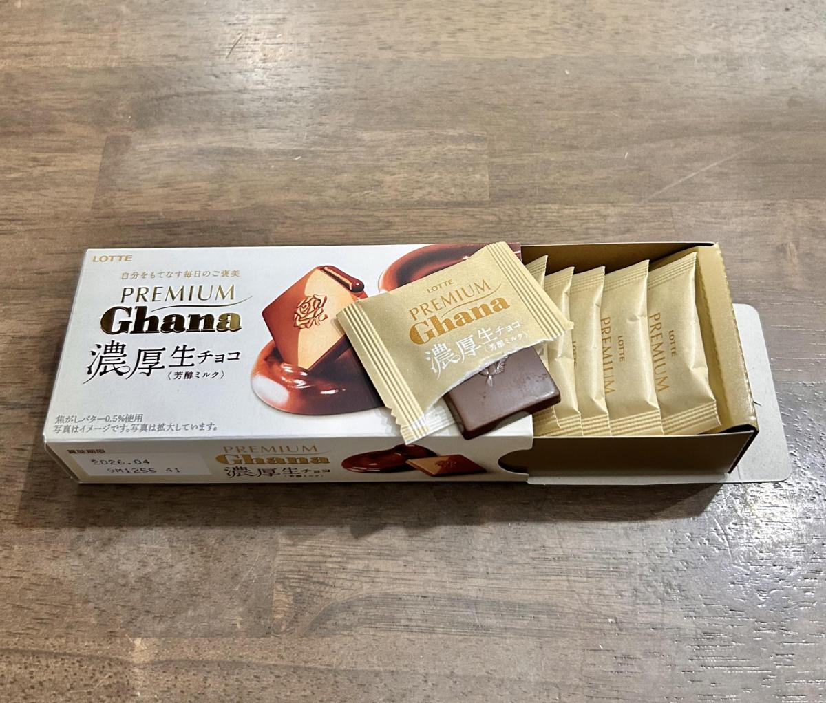 「プレミアムガーナ 濃厚生チョコレート 芳醇ミルク」は、少しお高めですがその分しっかり高級感があり、特別なご褒美にぴったりの一品です。おしゃれなパッケージも気分を上げてくれます。名前の通り芳醇なミルクのまろやかさが生チョコのとろける食感と重なり、口に入れた瞬間の幸福感がたまりません。贅沢な味わいをゆっくり堪能できるチョコレートでした。