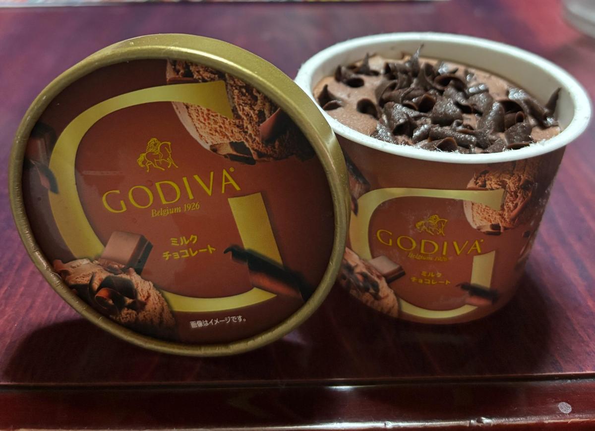 ゴディバのミルクチョコレートアイスをいただきました。チョコレートで有名なゴディバですが、アイスもやっぱり美味しいですね。なめらかなアイスに刻んだチョコレートがアクセントとなり、食感も楽しめます。ダークチョコとはまた違った、ミルクチョコならではのまろやかでやさしい甘さが口いっぱいに広がり、贅沢な気分になれました。ミルクチョコの風味がしっかり堪能できて大満足です。