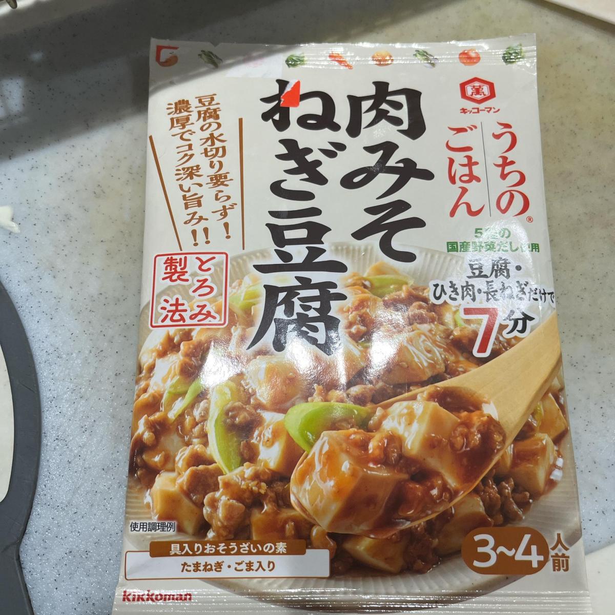 絹豆腐、豚ひき肉、長ネギを別に用意して作る総菜の素です。豆腐は木綿でも厚揚げでも代用できるし、ひき肉も豚ひき肉にこだわらなくても大丈夫です。レンゲを使って食べるのでまるで麻婆豆腐を食べている感覚になりますが、甘めの味付けで辛くないのでお子さんでも食べられます。うちでは冷凍の枝豆を入れたり少量のしめじも入れています。白いご飯にとてもよく合い最終的には丼みたいにして食べてしまいます。甘すぎると思ったら調理段階で醤油を少量足してもOKです。