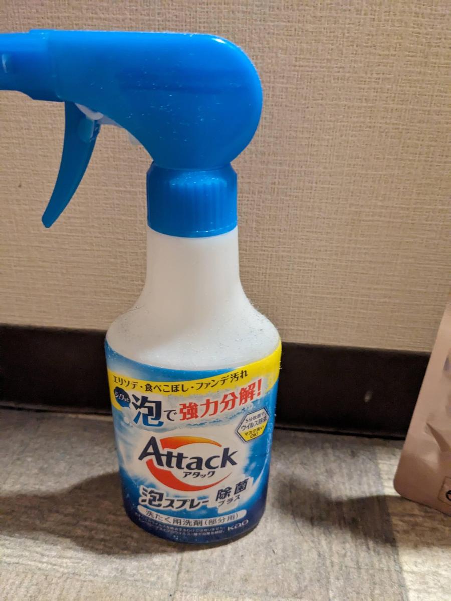 部分的に洗いたいときに液状の洗剤だとうまく量が調節できずに、どばっと出てしまうことがあります。その点、泡スプレーになると出すぎてしまうこともないですし、ピンポイントで汚れに吹きかけることができます。汚れがひどいときには泡スプレーをして、しばらく時間を置いてから洗っていますが、綺麗になりますよ。