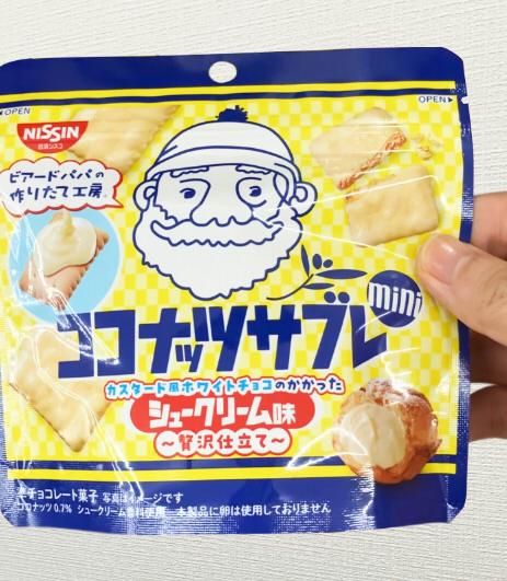 ココナッツサブレのシュークリーム(ビアードパパ)を先日食べましたが、その逆のシュー味のサブレも販売していたんですね。サクサクとした軽やかな食感、表面にはカスタード風味のホワイトチョコレートがコーティングされておりスイーツのような、贅沢な味わいになっています。ココナッツの風味はあまりないですね。ですがとても美味しいです。また買います。